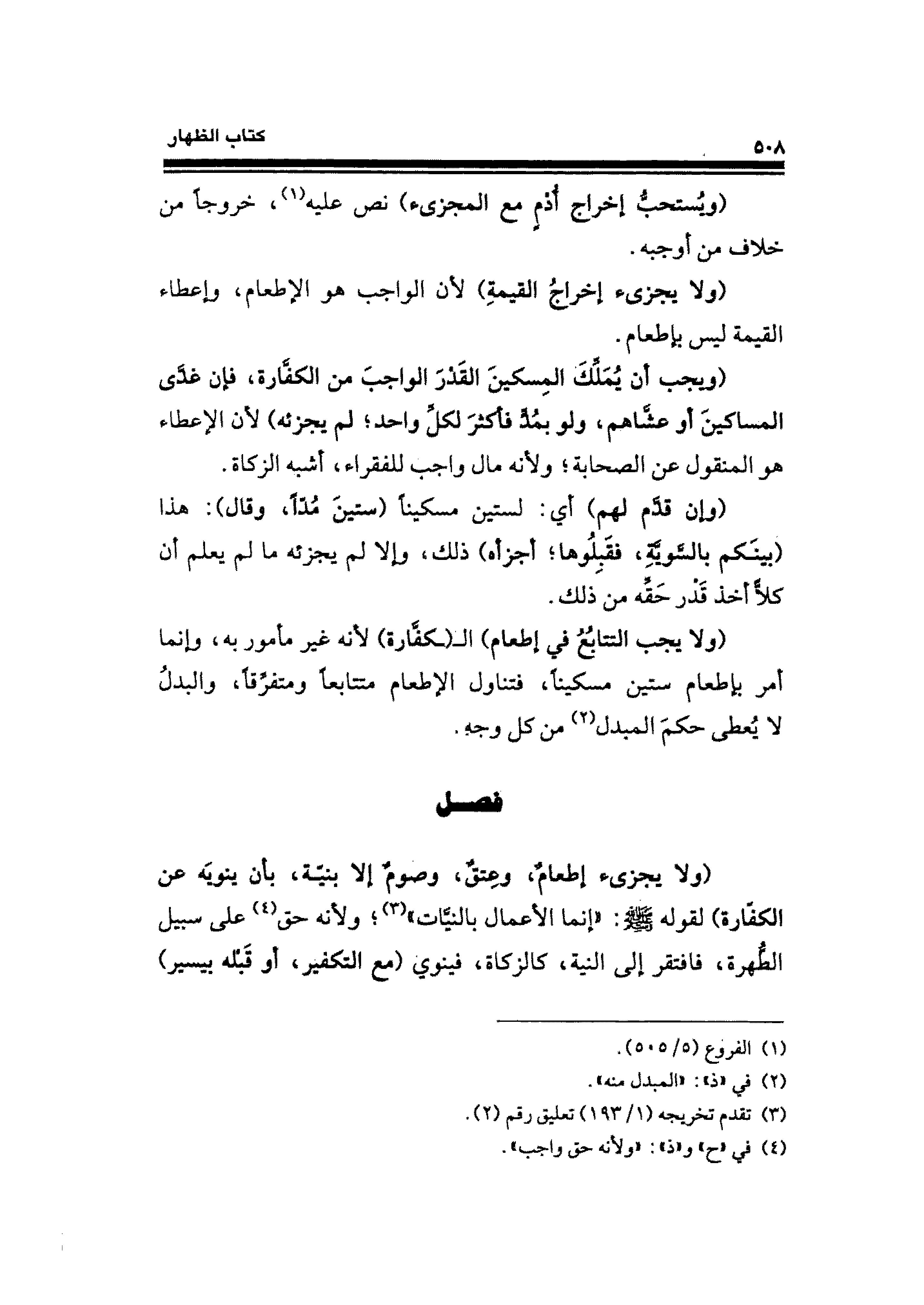 (ولا يجزئ إطعامٌ، وعِتقٌ، وصومٌ إلا بنيّة، بأن ينويَه عن الكفارة) لقوله - صلى الله عليه وسلم -: "إنما الأعمال بالنيات" (¬٣)؛ ولأنه حق (¬٤) على سبيل الطُّهرة، فافتقر إلى النية، كالزكاة، فينوي (مع التكفير، أو قَبْله بيسير)