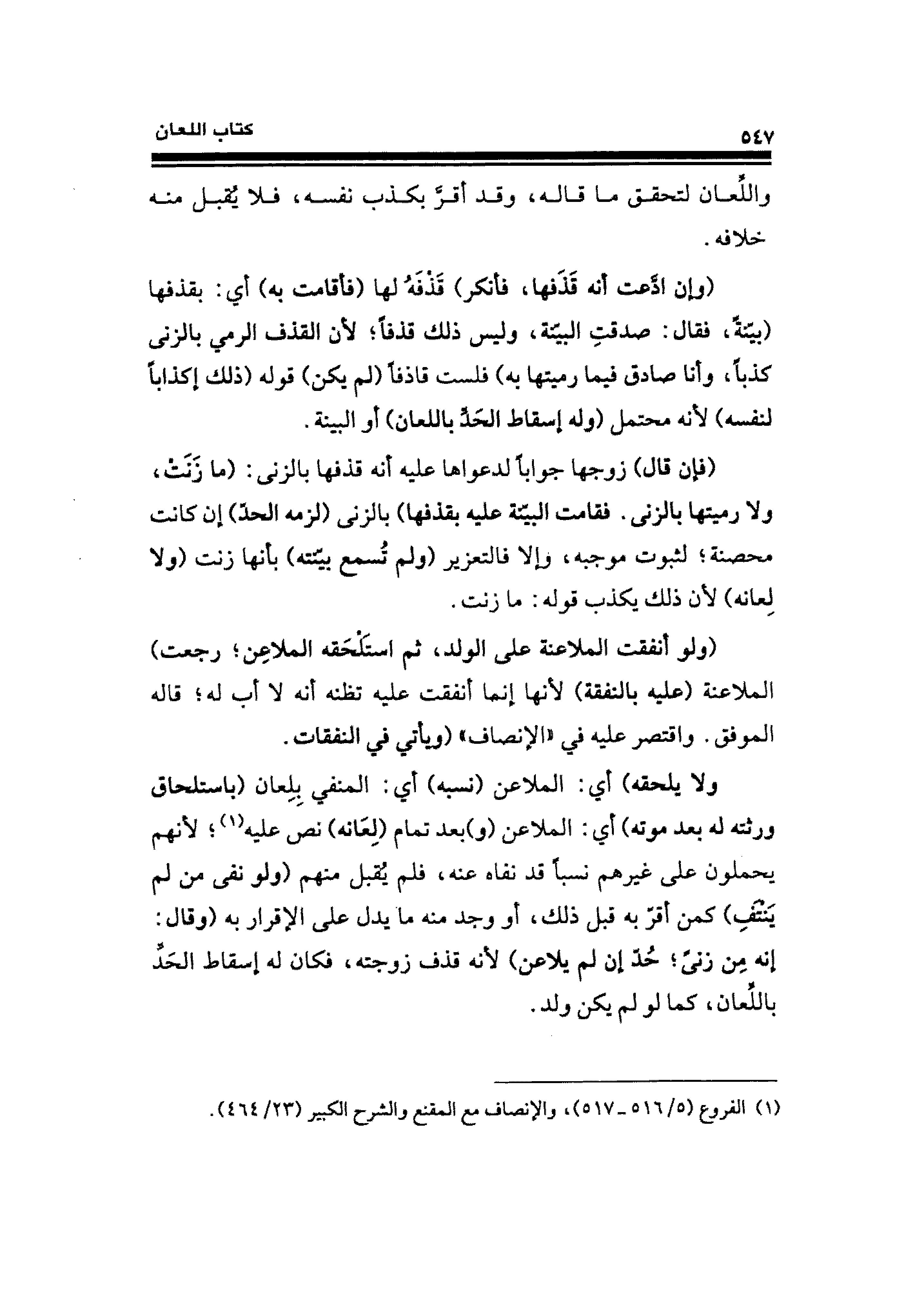 (¬١) الفروع (٥/ ٥١٦ - ٥١٧)، والإنصاف مع المقنع والشرح الكبير (٢٣/ ٤٦٤).