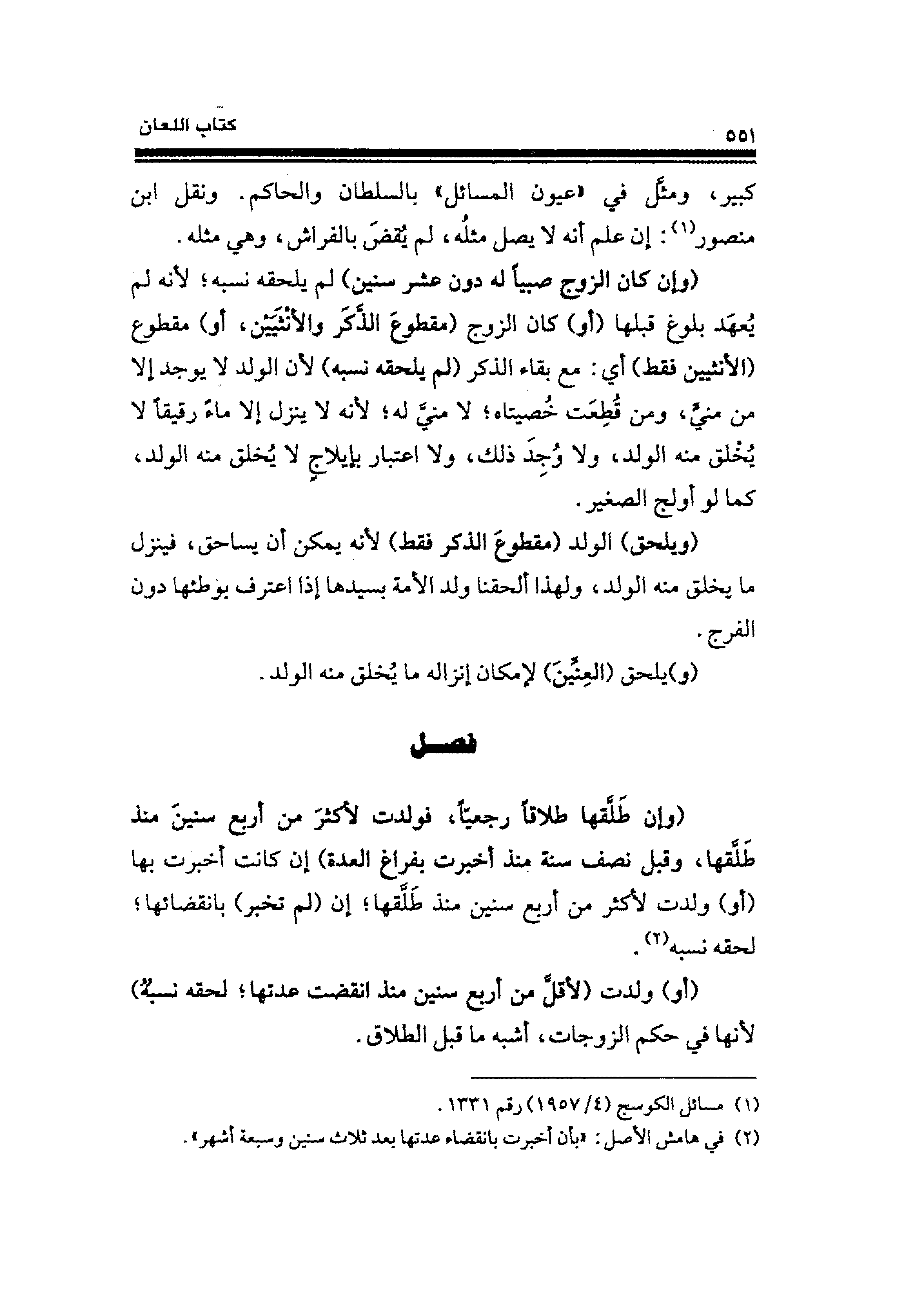 (¬٢) في هامش الأصل: "بأن أخبرت بانقضاء عدتها بعد ثلاث سنين وسبعة أشهر".