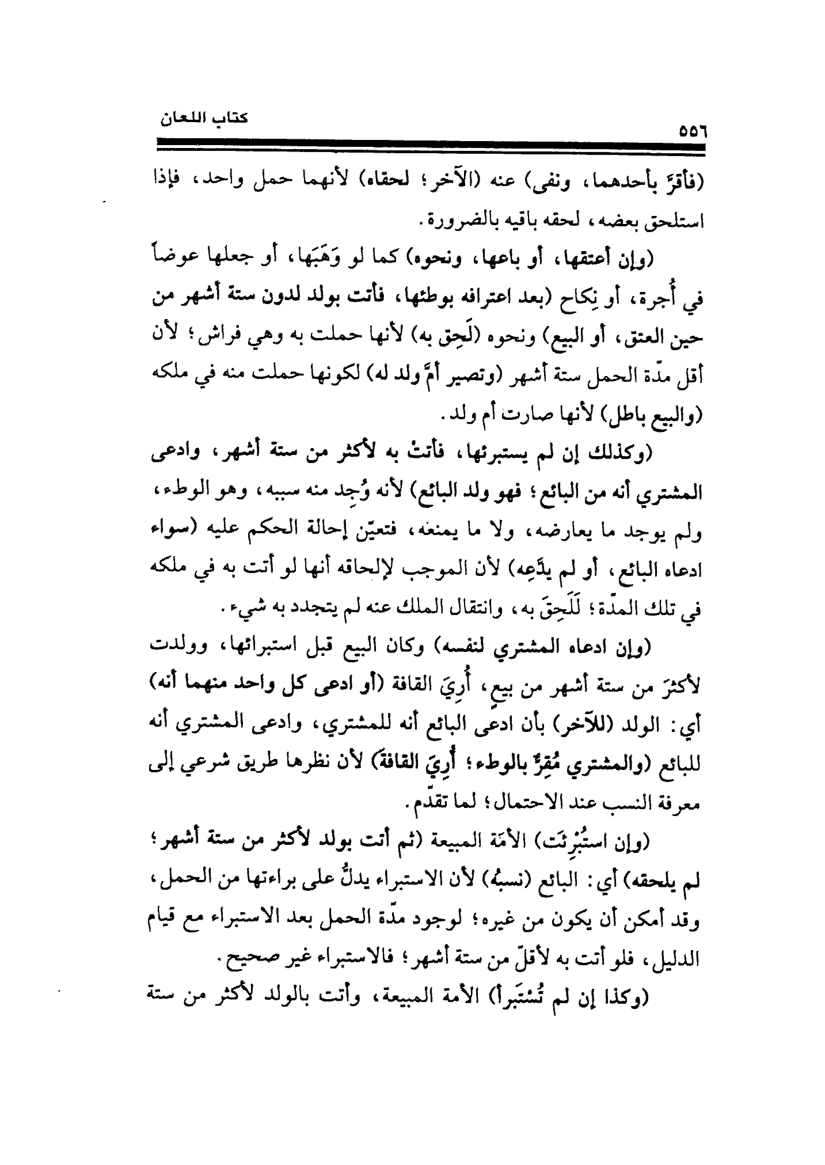 (وإن ادعاه المشتري لنفسه) وكان البيع قبل استبرائها، وولدت لأكثرَ من ستة أشهر من بيعٍ، أُرِيَ القافة (أو ادعى كل واحد منهما أنه) أي: الولد (للآخر) بأن ادعى البائع أنه للمشتري، وادعى المشتري أنه للبائع (والمشتري مقِرٌّ بالوطء؛ أرِيَ القافه) لأن نظرها طريق شرعي إلى معرفة النسب عند الاحتمال؛ لما تقدّم.