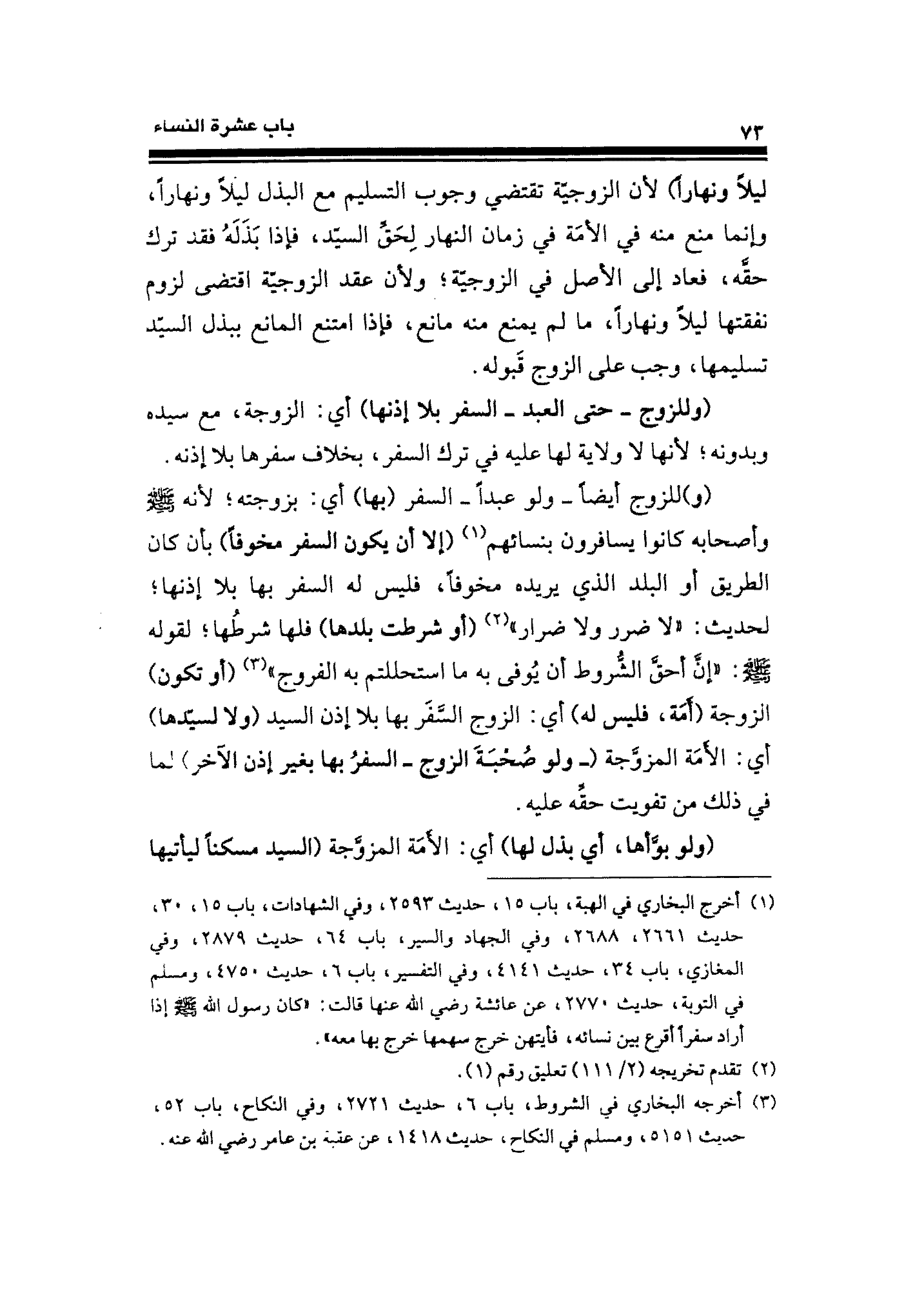 (¬٣) أخرجه البخاري في الشروط، باب ٦، حديث ٢٧٢١، وفي النكاح، باب ٥٢، حديث ٥١٥١، ومسلم في النكاح، حديث ١٤١٨، عن عقبة بن عامر رضي الله عنه.