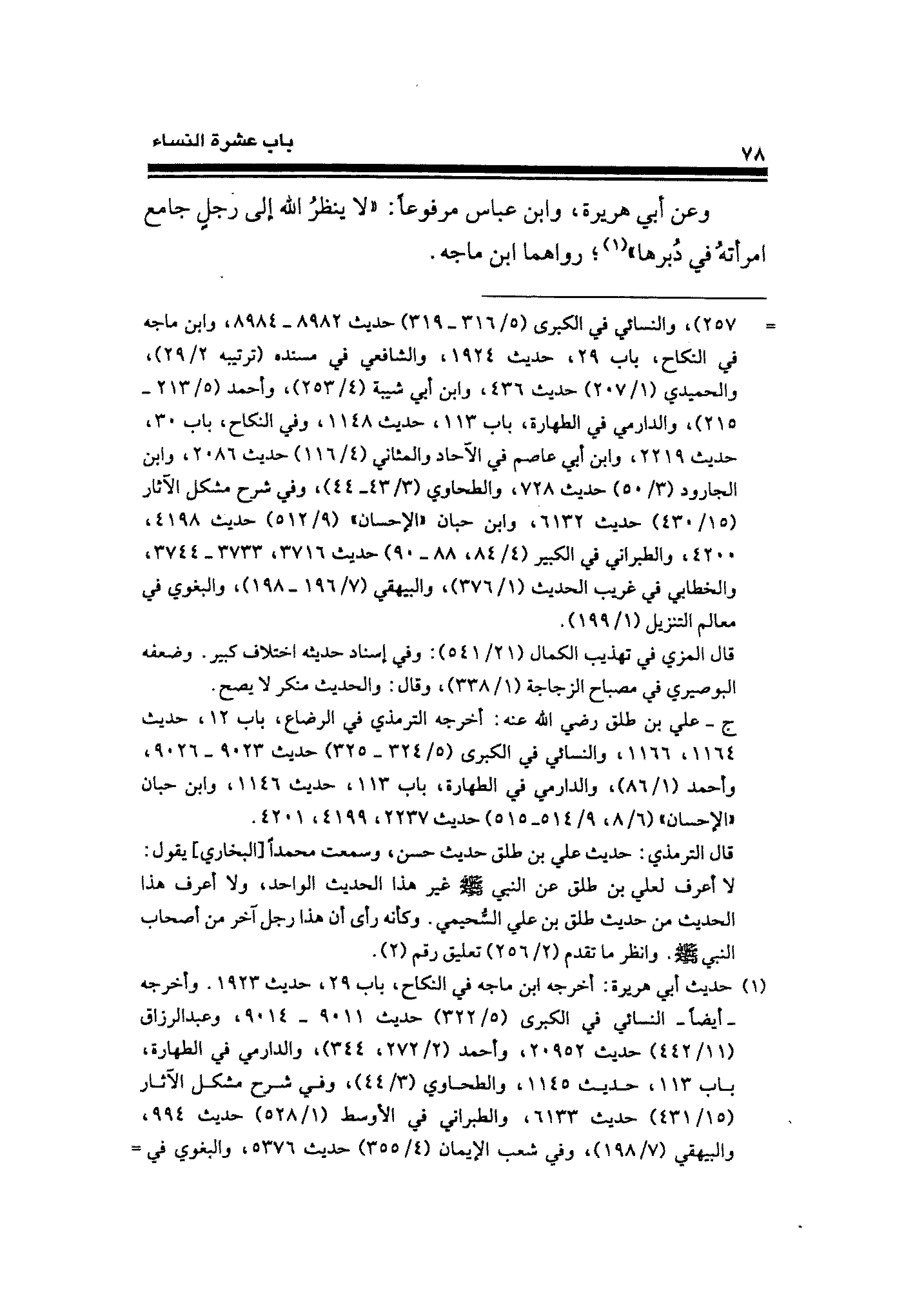 وعن أبي هريرة، وابن عباس مرفوعًا: "لا ينظرُ الله إلى رجلٍ جامع امرأتهُ في دُبرها" (¬١)؛ رواهما ابن ماجه.