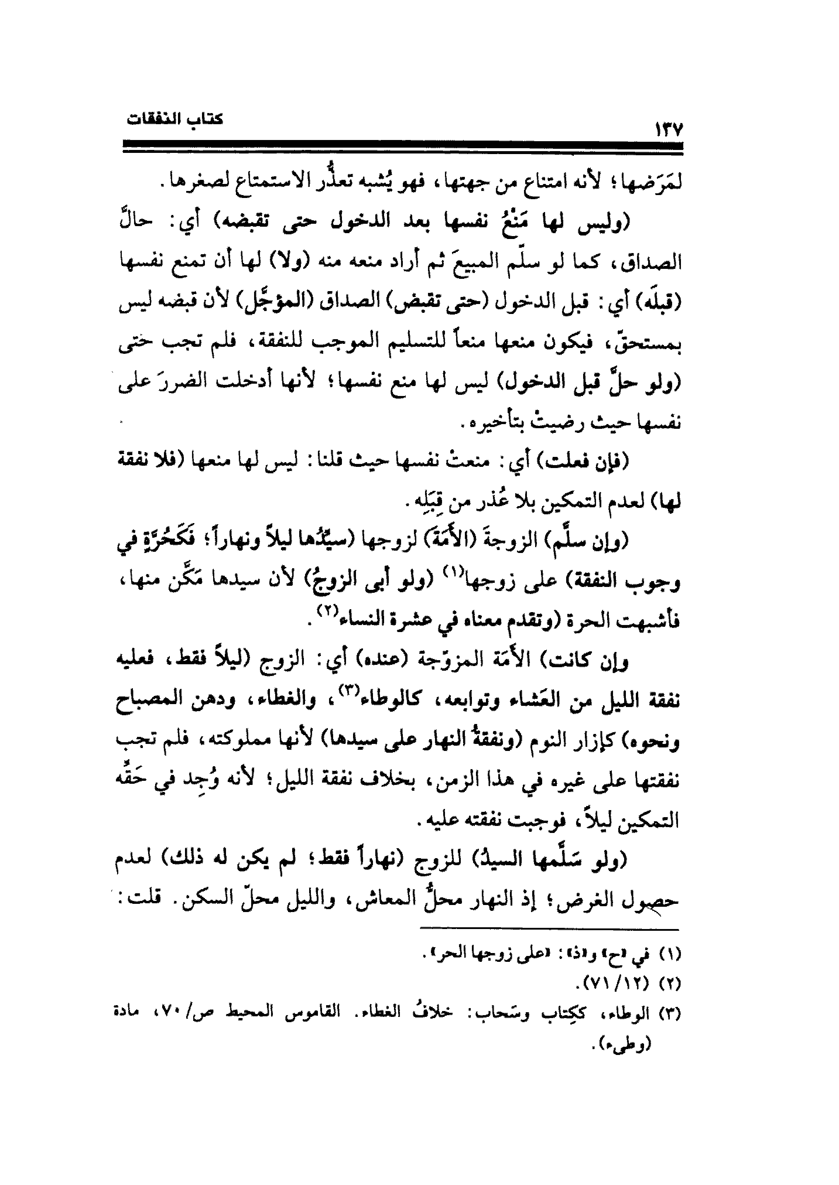 وإن كانت) الأَمَة المزوّجة (عنده) أي: الزوج (ليلًا فقط، فعليه نفقة الليل من العَشاء وتوابعه، كالوطاء (¬٣)، والغطاء، ودهن المصباح ونحوه) كإزار النوم (ونفقةُ النهار على سيدها) لأنها مملوكته، فلم تجب نفقتها على غيره في هذا الزمن، بخلاف نفقة الليل؛ لأنه وُجِد في حَقِّه التمكين ليلًا، فوجبت نفقته عليه.