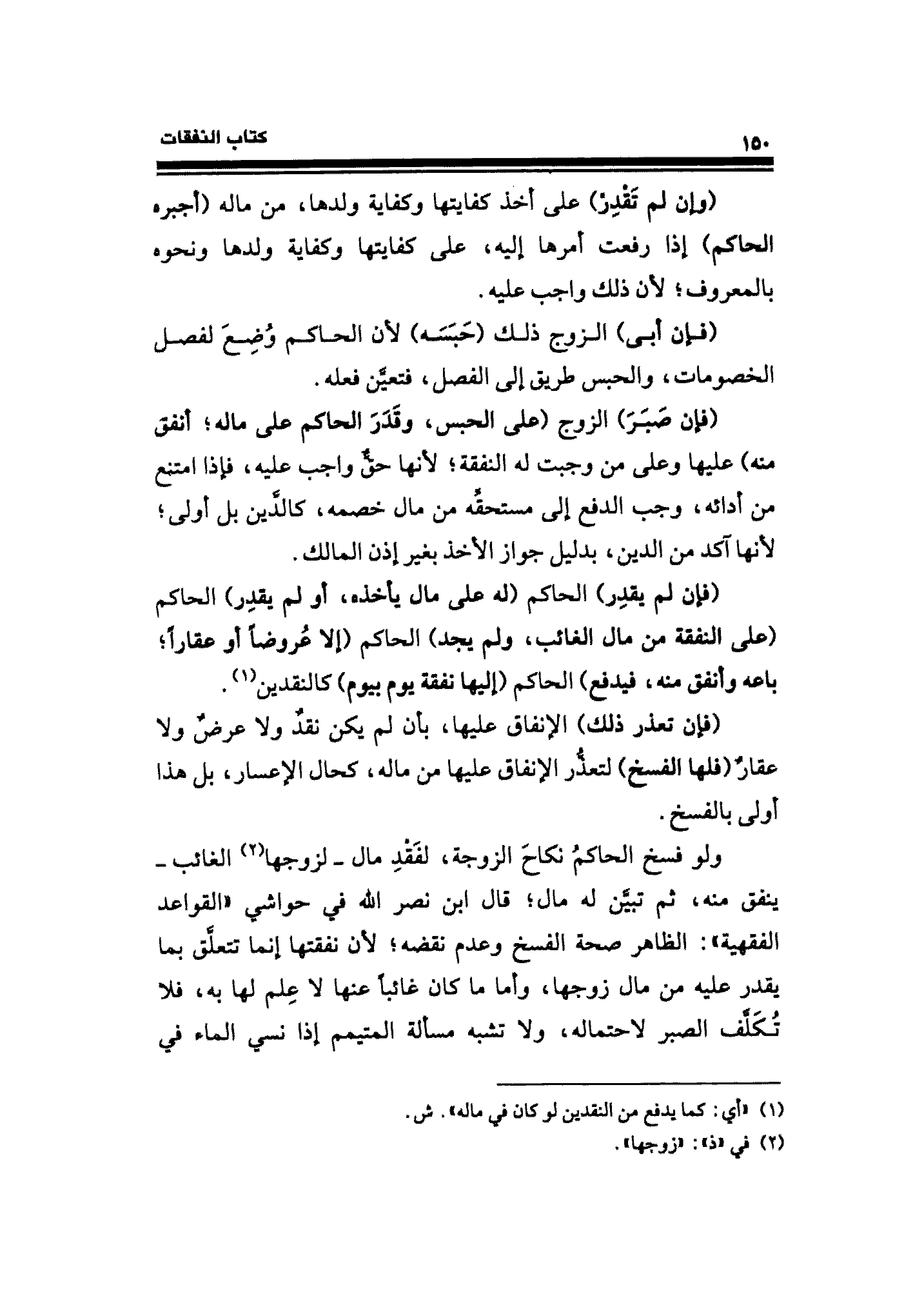ولو فسخ الحاكمُ نكاحَ الزوجة، لفَقدِ مال -لزوجها (¬٢) الغائب- ينفق منه، ثم تبيَّن له مال؛ قال ابن نصر الله في حواشي "القواعد الفقهية": الظاهر صحة الفسخ وعدم نقضه؛ لأن نفقتها إنما تتعلَّق بما يقدر عليه من مال زوجها، وأما ما كان غائبًا عنها لا عِلم لها به، فلا تُكَلَّف الصبر لاحتماله، ولا تشبه مسألة المتيمم إذا نسي الماء في