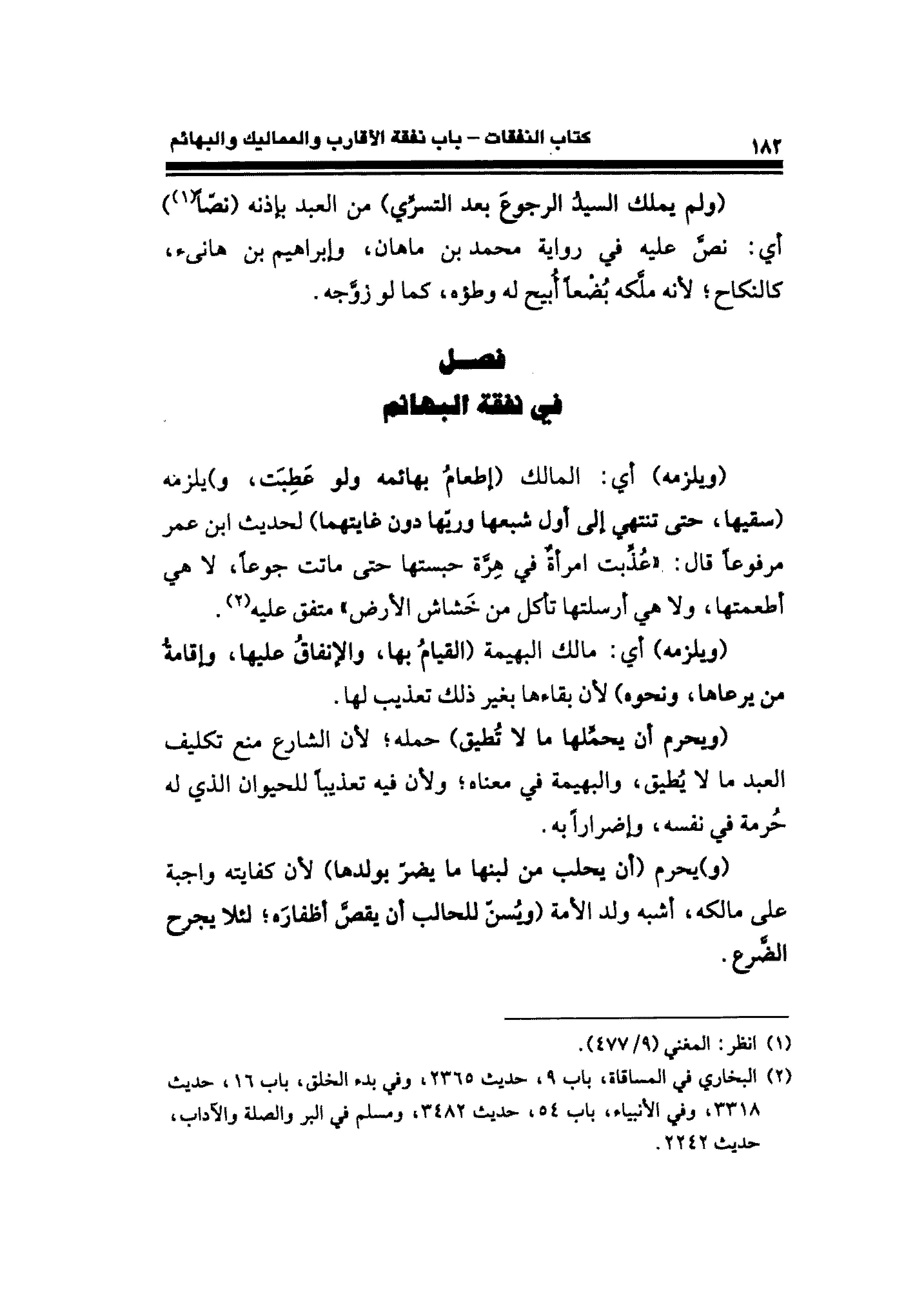 فصل في نفقة البهائم