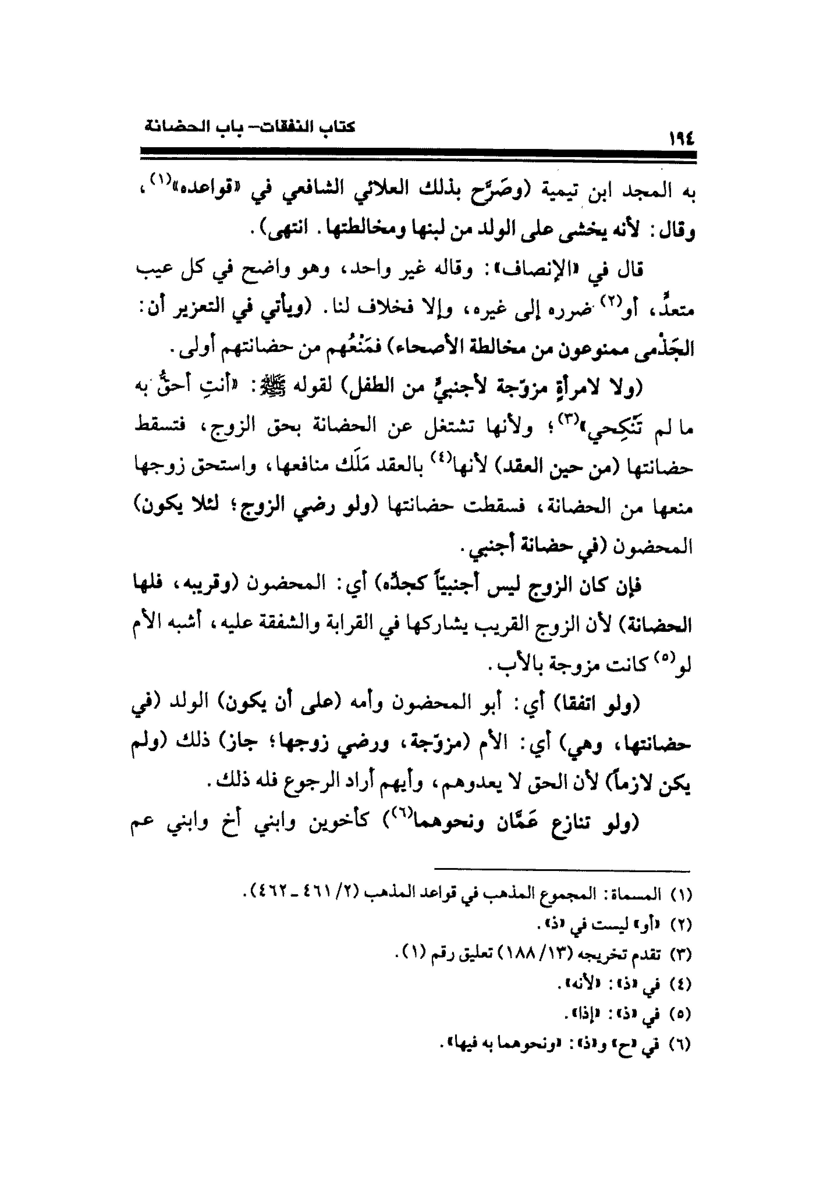 قال في "الإنصاف": وقاله غير واحد، وهو واضح في عيب متعدٍّ، أو (¬٢) ضرره إلى غيره، وإلا فخلاف لنا. (ويأتى في التعزير أن: الجَذْمى ممنوعون من مخالطة الأصحاء) فمَنْعُهم من حضانتهم أولى.