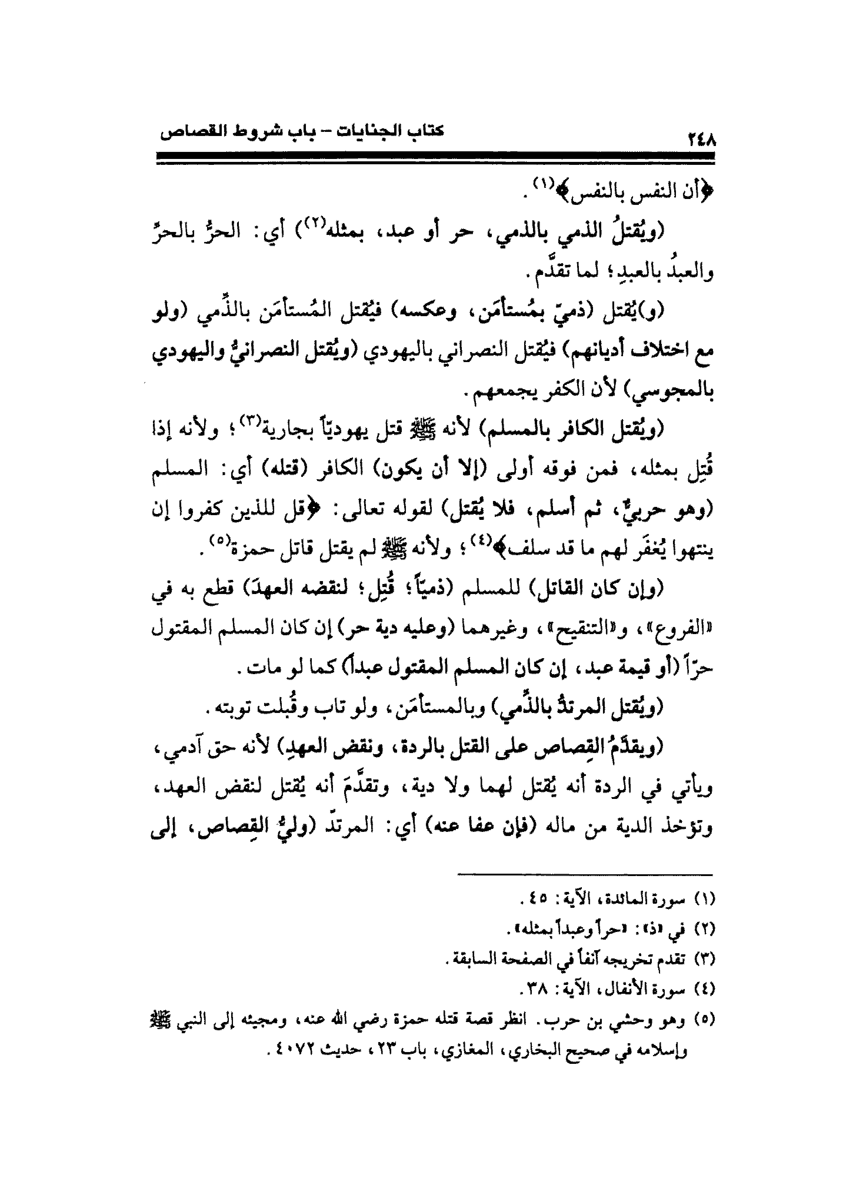 {أَنَّ النَّفْسَ بِالنَّفْسِ} (¬١).