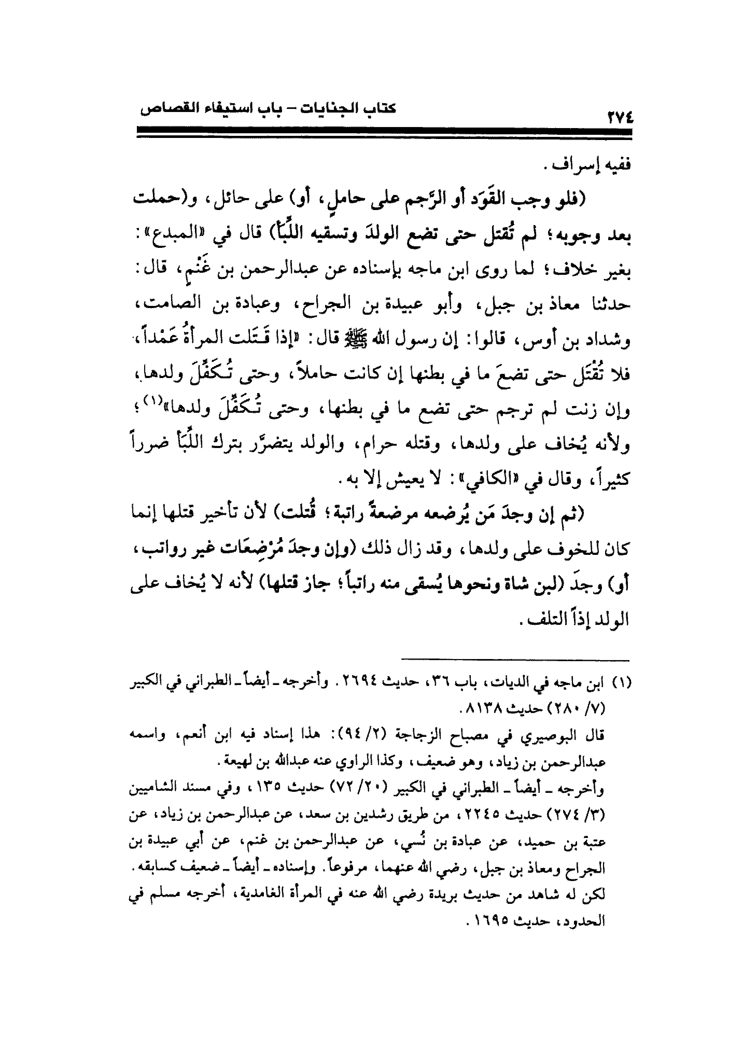 (¬١) ابن ماجه في الديات، باب ٣٦، حديث ٢٦٩٤. وأخرجه -أيضًا- الطبراني فى الكبير (٧/ ٢٨٠) حديث ٨١٣٨.