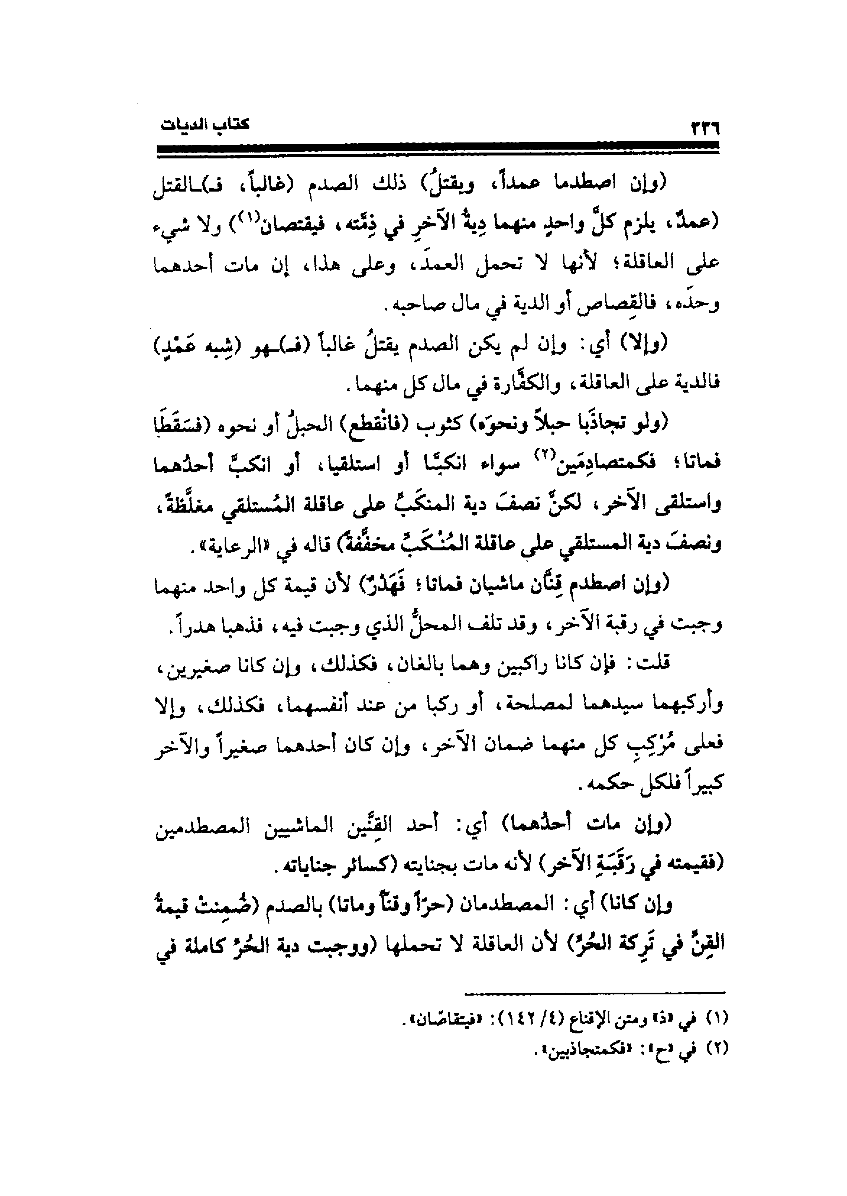 (¬١) في "ذ" ومتن الإقناع (٤/ ١٤٢) "فيتقاصّان".
