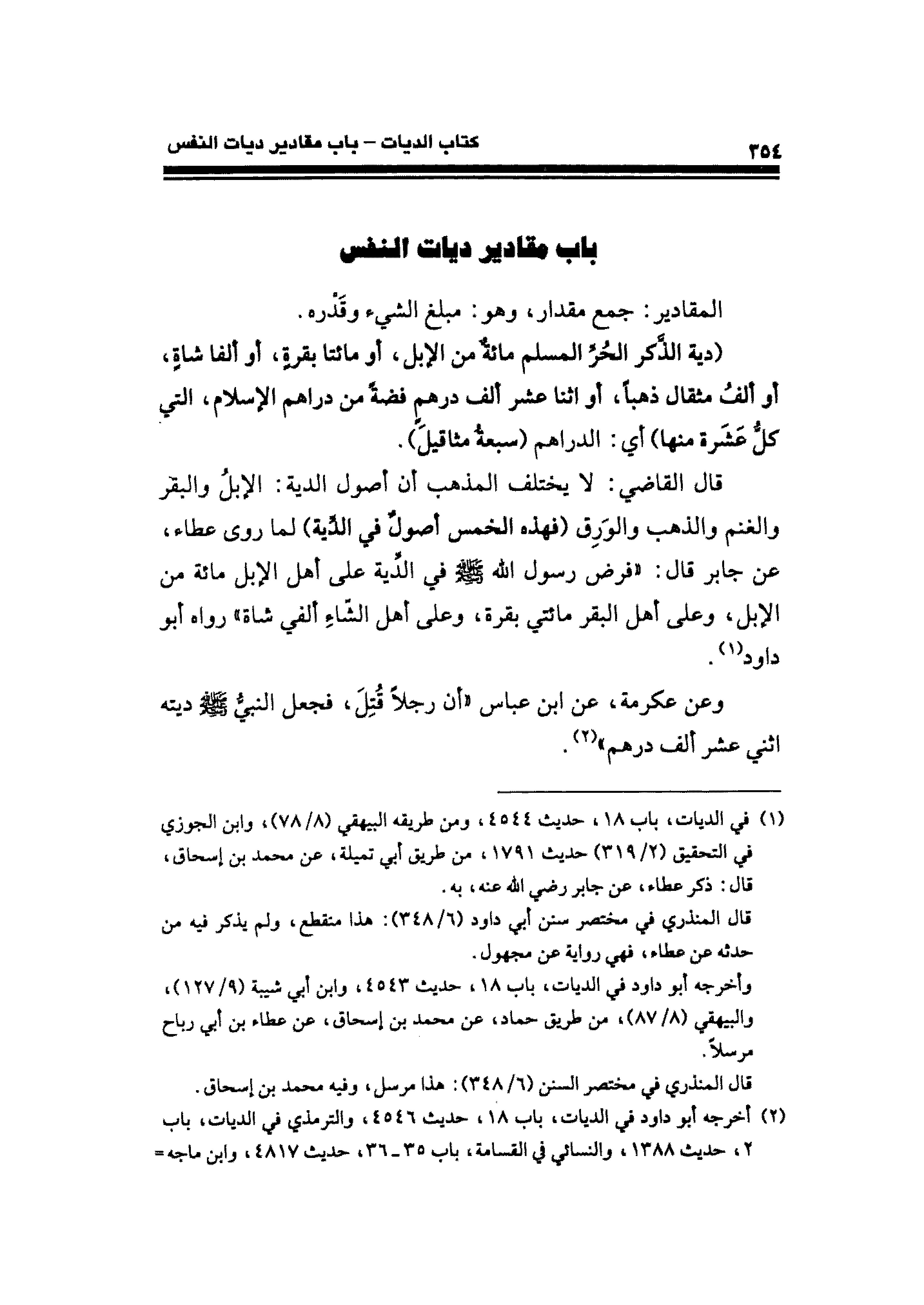 (¬٢) أخرجه أبو داود فى الديات، باب ١٨، حديث ٤٥٤٦، والترمذي في الديات، باب ٢، حديث ١٣٨٨، والنسائي في القسامة، باب ٣٥ - ٣٦، حديث ٤٨١٧، وابن ماجه =