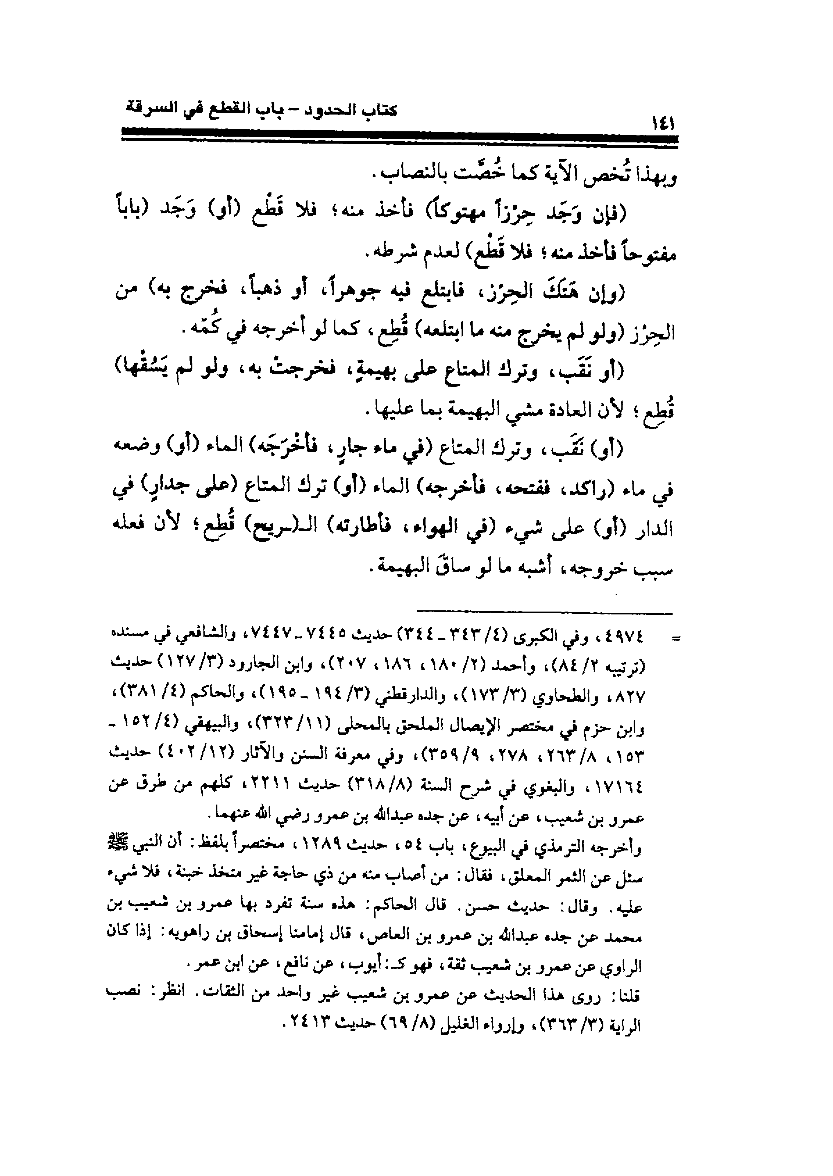 = ٤٩٧٤، وفي الكبرى (٤/ ٣٤٣ - ٣٤٤) حديث ٧٤٤٥ - ٧٤٤٧، والشافعي في مسنده (ترتيبه ٢/ ٨٤)، وأحمد (٢/ ١٨٠، ١٨٦، ٢٠٧)، وابن الجارود (٣/ ١٢٧) حديث ٨٢٧، والطحاوي (٣/ ١٧٣)، والدارقطني (٣/ ١٩٤ - ١٩٥)، والحاكم (٤/ ٣٨١)، وابن حزم في مختصر الإيصال الملحق بالمحلى (١١/ ٣٢٣)، والبيهقي (٤/ ١٥٢ - ١٥٣، ٨/ ٢٦٣، ٢٧٨، ٩/ ٣٥٩)، وفي معرفة السنن والآثار (١٢/ ٤٠٢) حديث ١٧١٦٤، والبغوي في شرح السنة (٨/ ٣١٨) حديث ٢٢١١، كلهم من طرق عن عمرو بن شعيب، عن أبيه، عن جده عبد الله بن عمرو رضي الله عنهما.