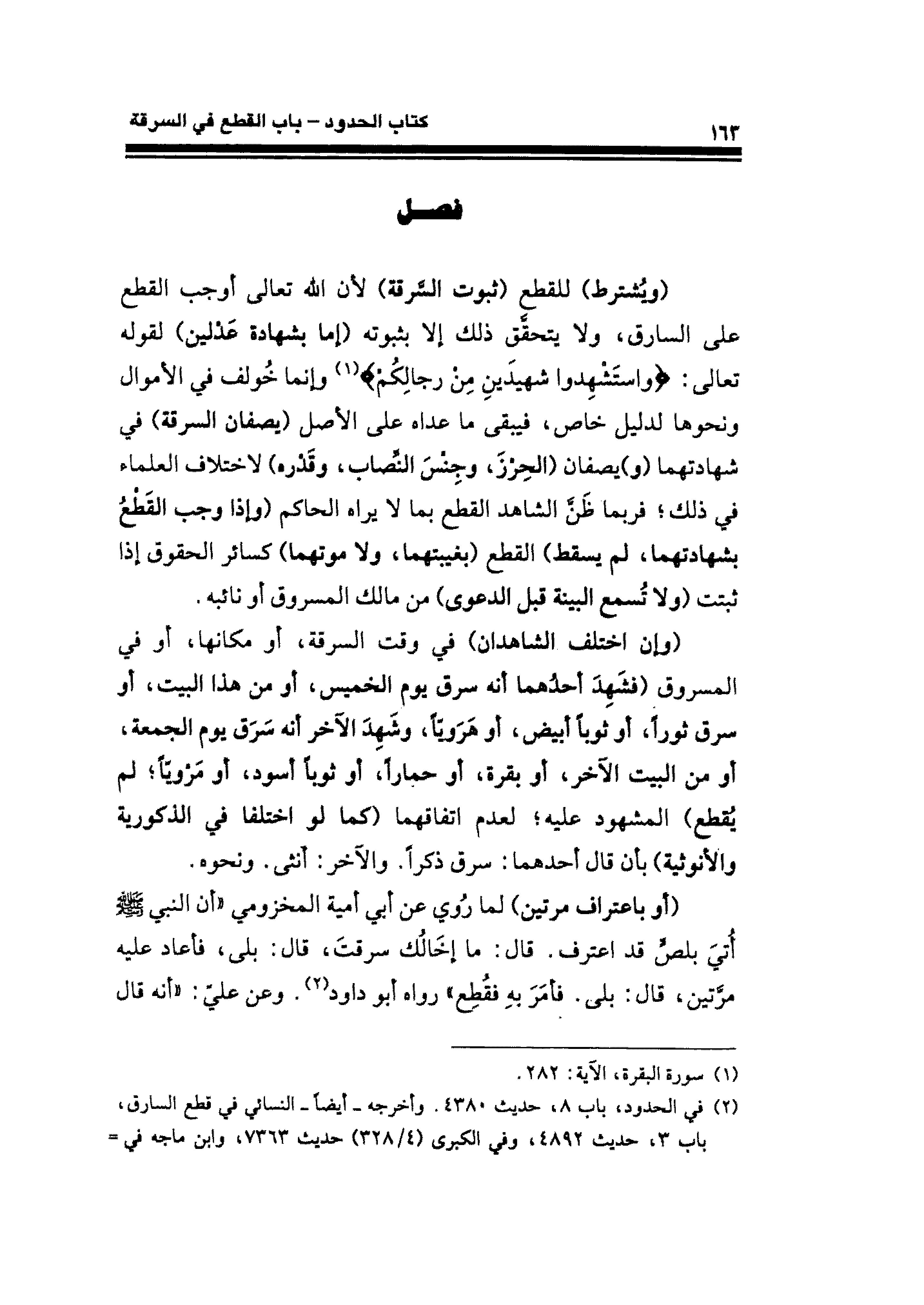 (أو باعتراف مرتين) لما رُوي عن أبي أمية المخزومي "أن النبي - صلى الله عليه وسلم - أُتيَ بلصٍّ قد اعترف. قال: ما إخَالُك سرقتَ، قال: بلى، فأعاد عليه مرَّتين، قال: بلى. فأمَرَ بهِ فقُطِع" رواه أبو داود (¬٢). وعن عليّ: "أنه قال