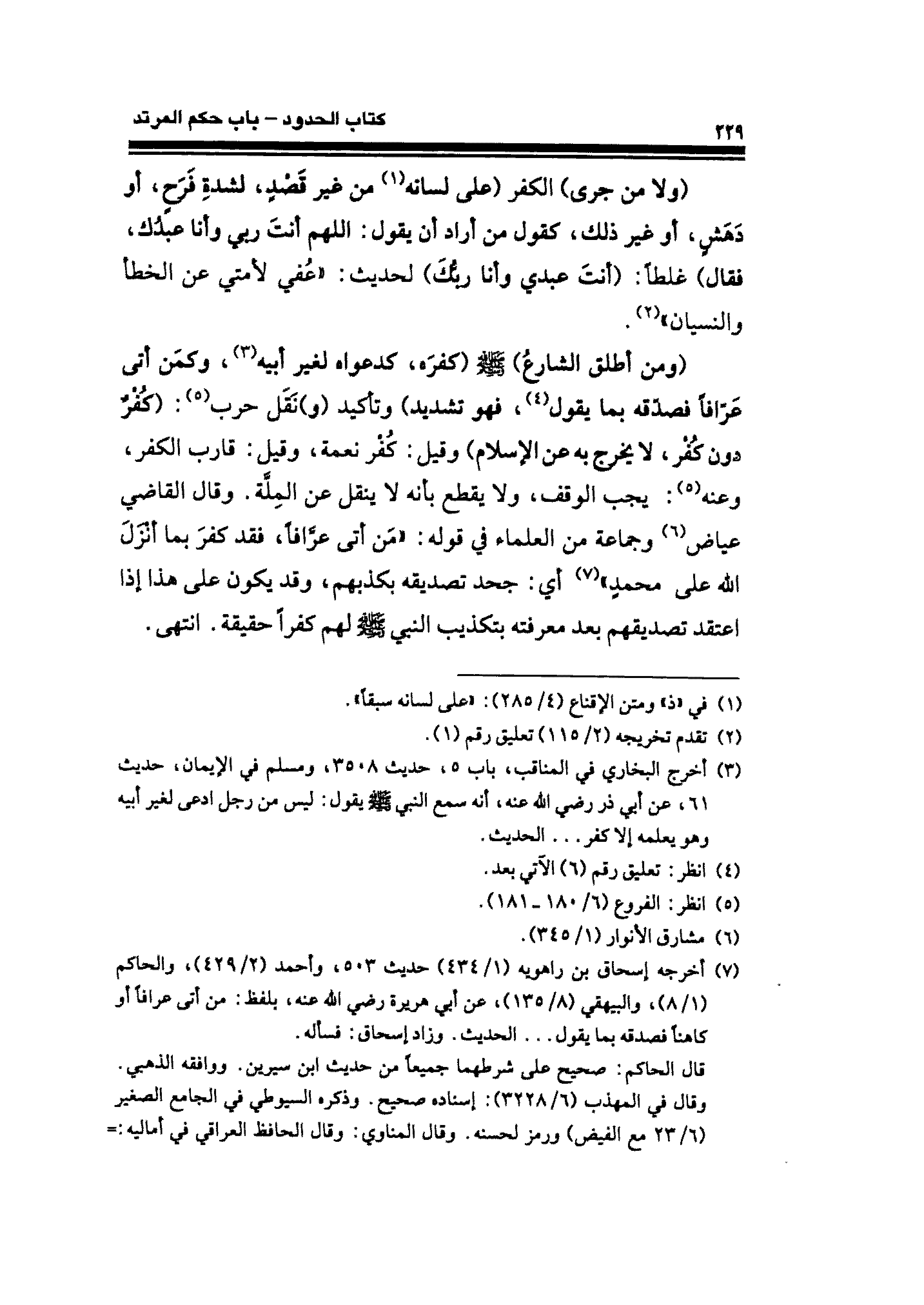 (¬٣) أخرج البخاري في المناقب، باب ٥، حديث ٣٥٠٨، ومسلم في الإيمان، حديث ٦١، عن أبي ذر رضي الله عنه، أنه سمع النبي - صلى الله عليه وسلم - يقول: ليس من رجل ادعى لغير أبيه وهو يعلمه إلا كفر ... الحديث.
