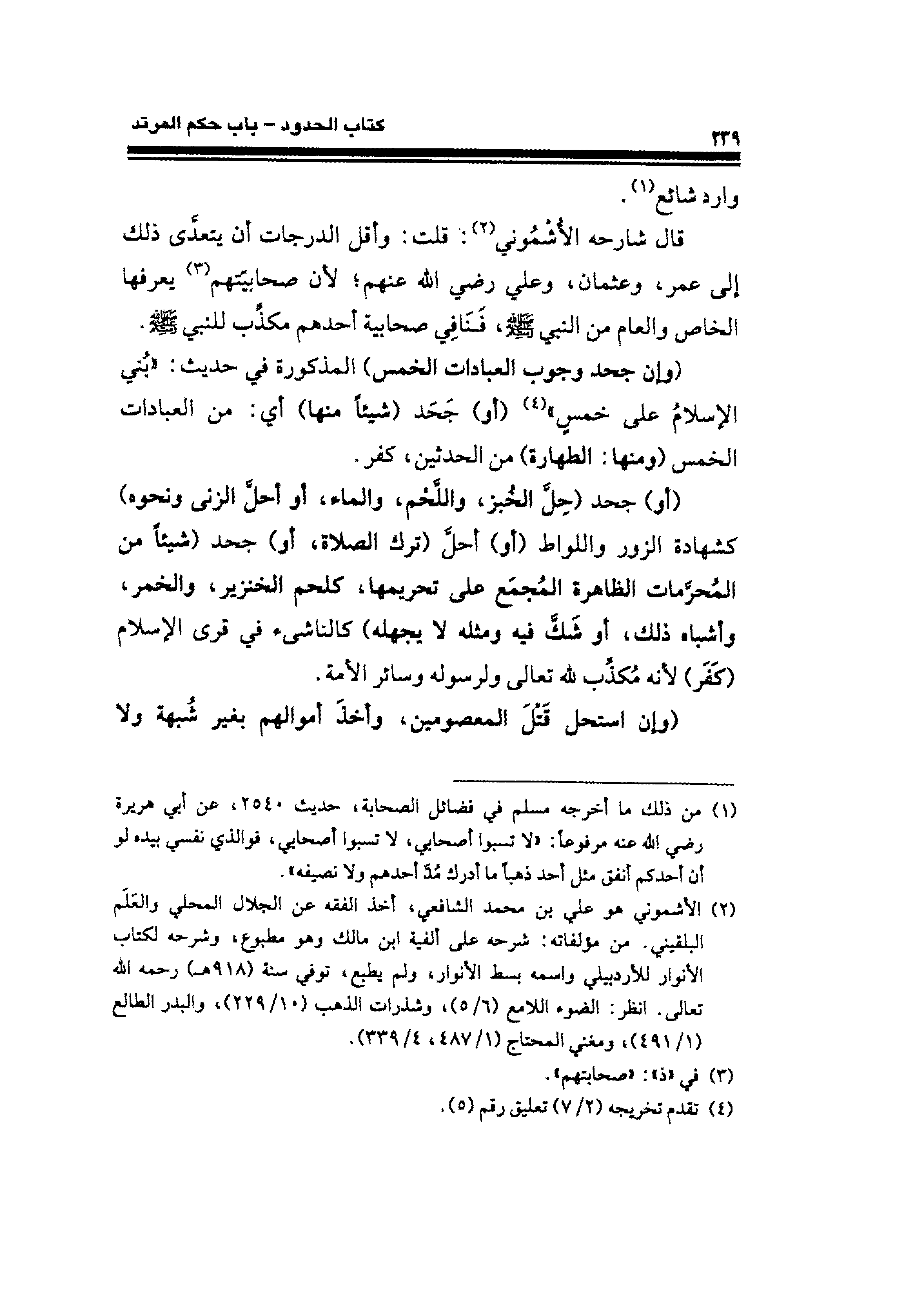 (¬٢) الأشموني هو علي بن محمد الشافعي، أخذ الفقه عن الجلال المحلي والعَلَم البلقيني. من مؤلفاته: شرحه على ألفية ابن مالك وهو مطبوع، وشرحه لكتاب الأنوار للأردبيلي واسمه بسط الأنوار، ولم يطبع، توفي سنة (٩١٨ هـ) رحمه الله تعالى. انظر: الضوء اللامع (٦/ ٥)، وشذرات الذهب (١٠/ ٢٢٩)، والبدر الطالع (١/ ٤٩١)، ومغني المحتاج (١/ ٤٨٧، ٤/ ٣٣٩).
