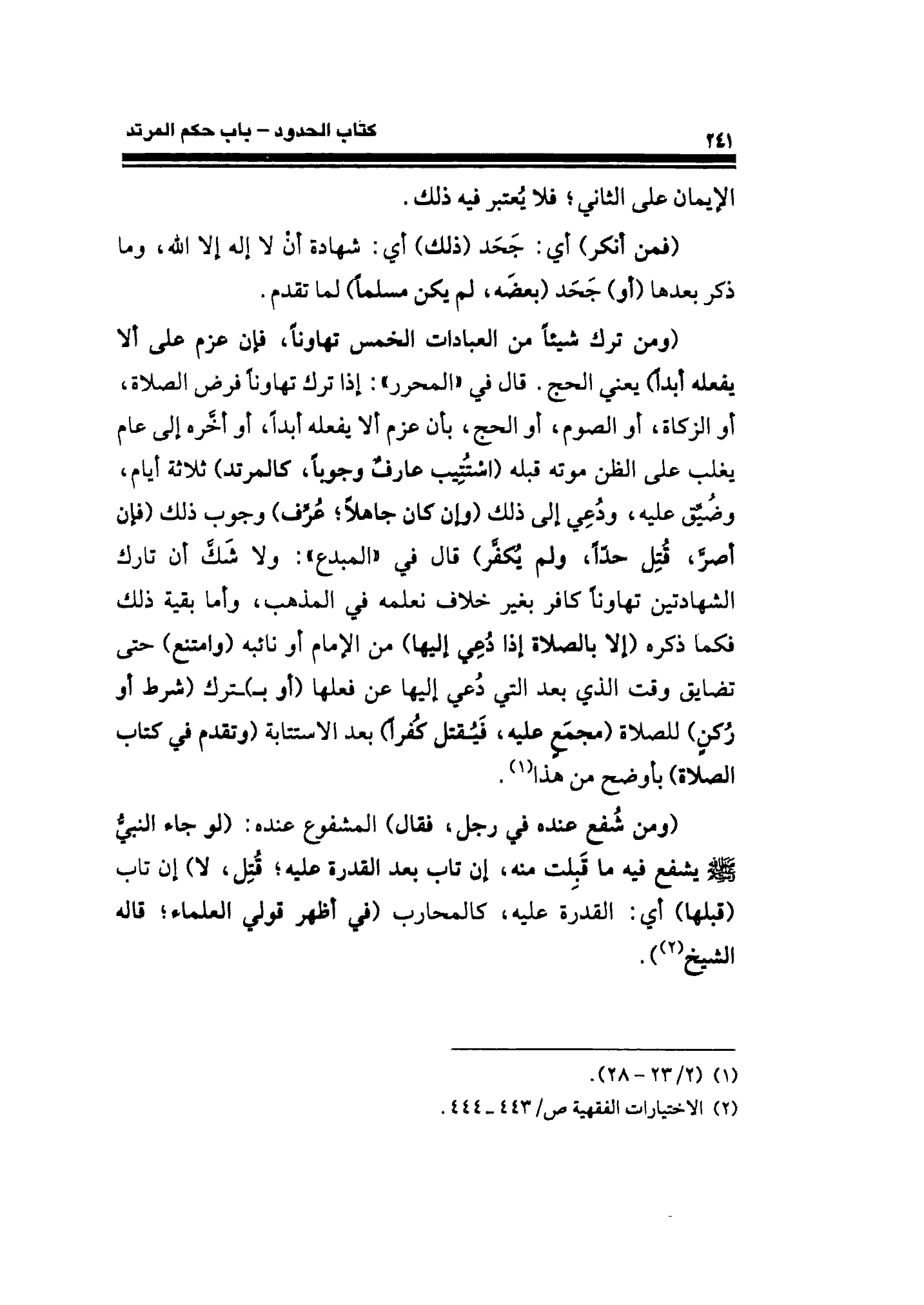 (¬٢) الاختيارات الفقهية ص / ٤٤٣ - ٤٤٤.