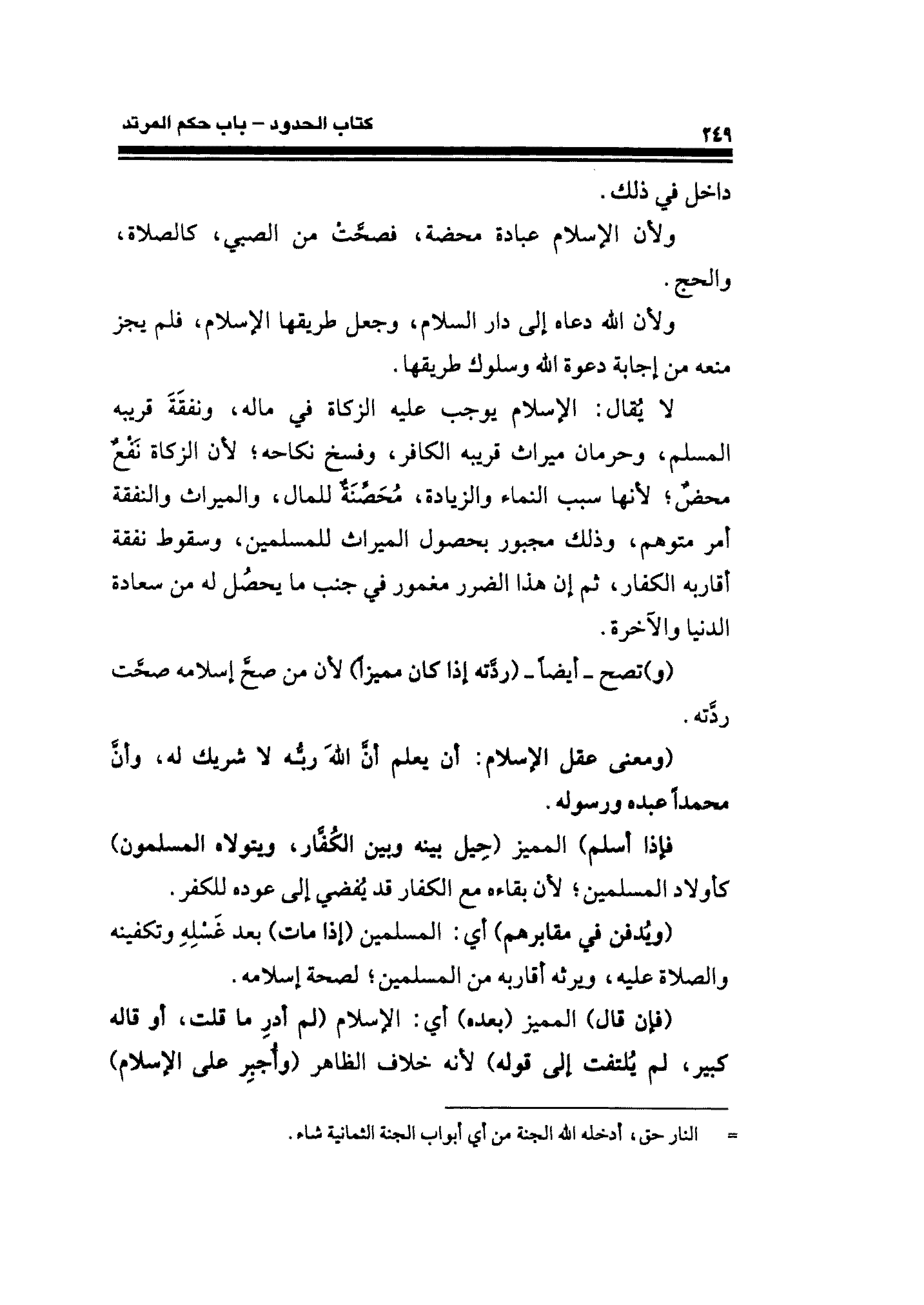 لا يُقال: الإِسلام يوجب عليه الزكاة في ماله، ونفقَةَ قريبه المسلم، وحرمان ميراث قريبه الكافر، وفسخ نكاحه؛ لأن الزكاة نَفْعٌ محضٌ؛ لأنها سبب النماء والزيادة، مُحَصِّنَةٌ للمال، والميراث والنفقة أمر متوهم، وذلك مجبور بحصول الميراث للمسلمِين، وسقوط نفقة أقاربه الكفار، ثم إن هذا الضرر مغمور في جنب ما يحصُل له من سعادة الدنيا والآخرة.