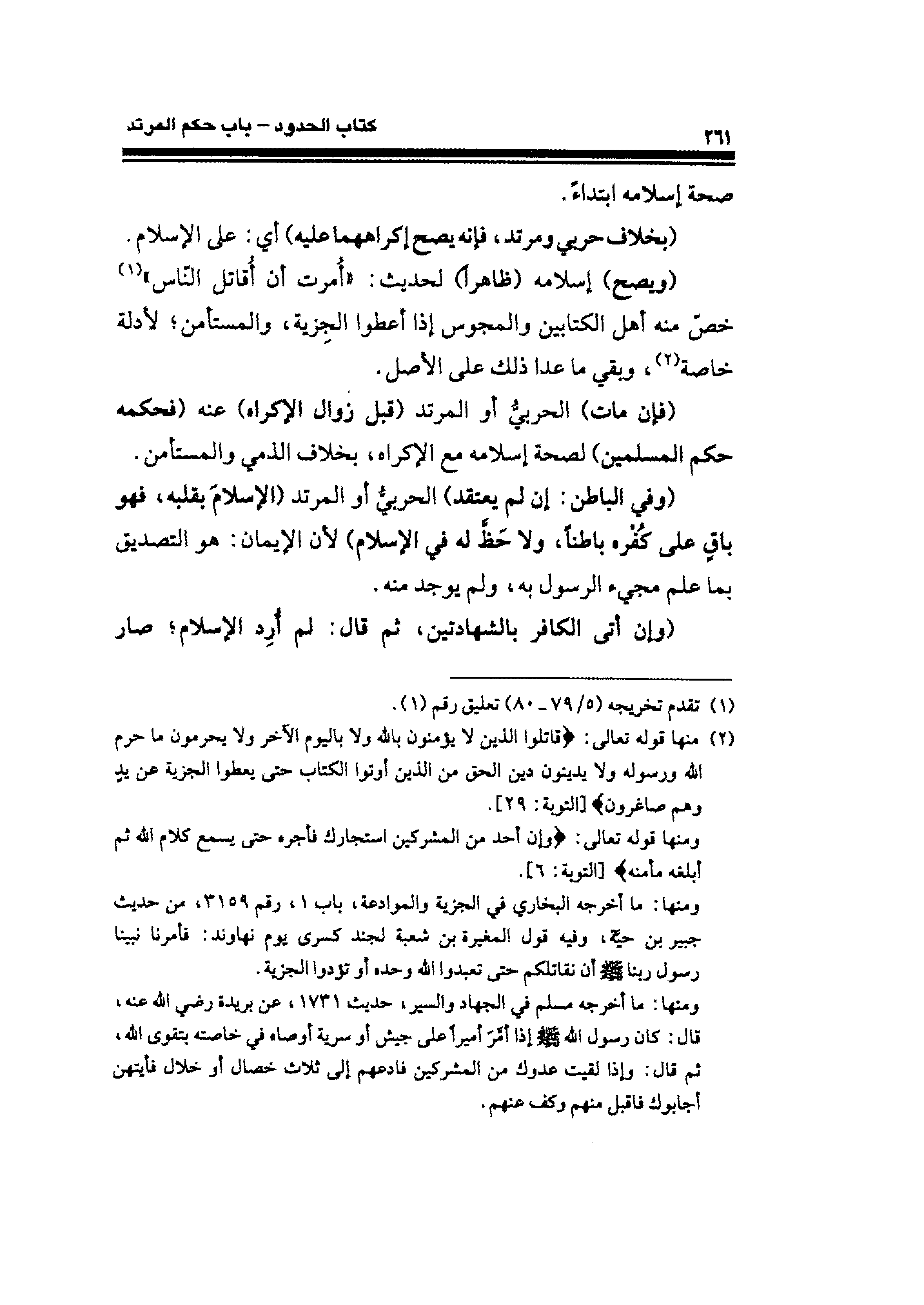 (¬٢) منها قوله تعالى: {قَاتِلُوا الَّذِينَ لَا يُؤْمِنُونَ بِاللَّهِ وَلَا بِالْيَوْمِ الْآخِرِ وَلَا يُحَرِّمُونَ مَا حَرَّمَ اللَّهُ وَرَسُولُهُ وَلَا يَدِينُونَ دِينَ الْحَقِّ مِنَ الَّذِينَ أُوتُوا الْكِتَابَ حَتَّى يُعْطُوا الْجِزْيَةَ عَنْ يَدٍ وَهُمْ صَاغِرُونَ (٢٩)} [التوبة: ٢٩].