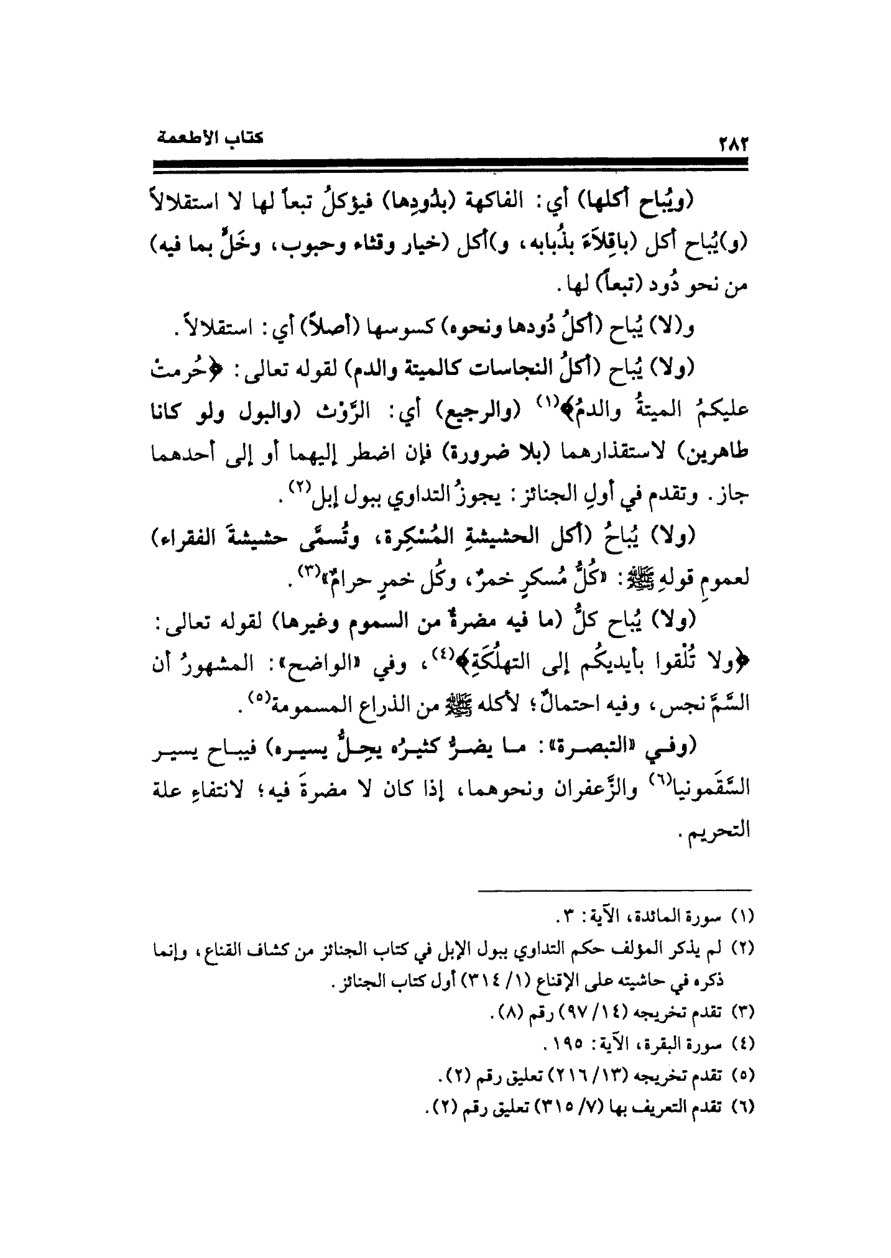 (ولا) يُباح كلُّ (ما فيه مضرةٌ من السموم وغيرها) لقوله تعالى: {وَلَا تُلْقُوا بِأَيدِيكُمْ إِلَى التَّهْلُكَةِ} (¬٤)، وفي "الواضح": المشهورُ أن السَّمَّ نجس، وفيه احتمالٌ؛ لأكله - صلى الله عليه وسلم - من الذراع المسومة (¬٥).