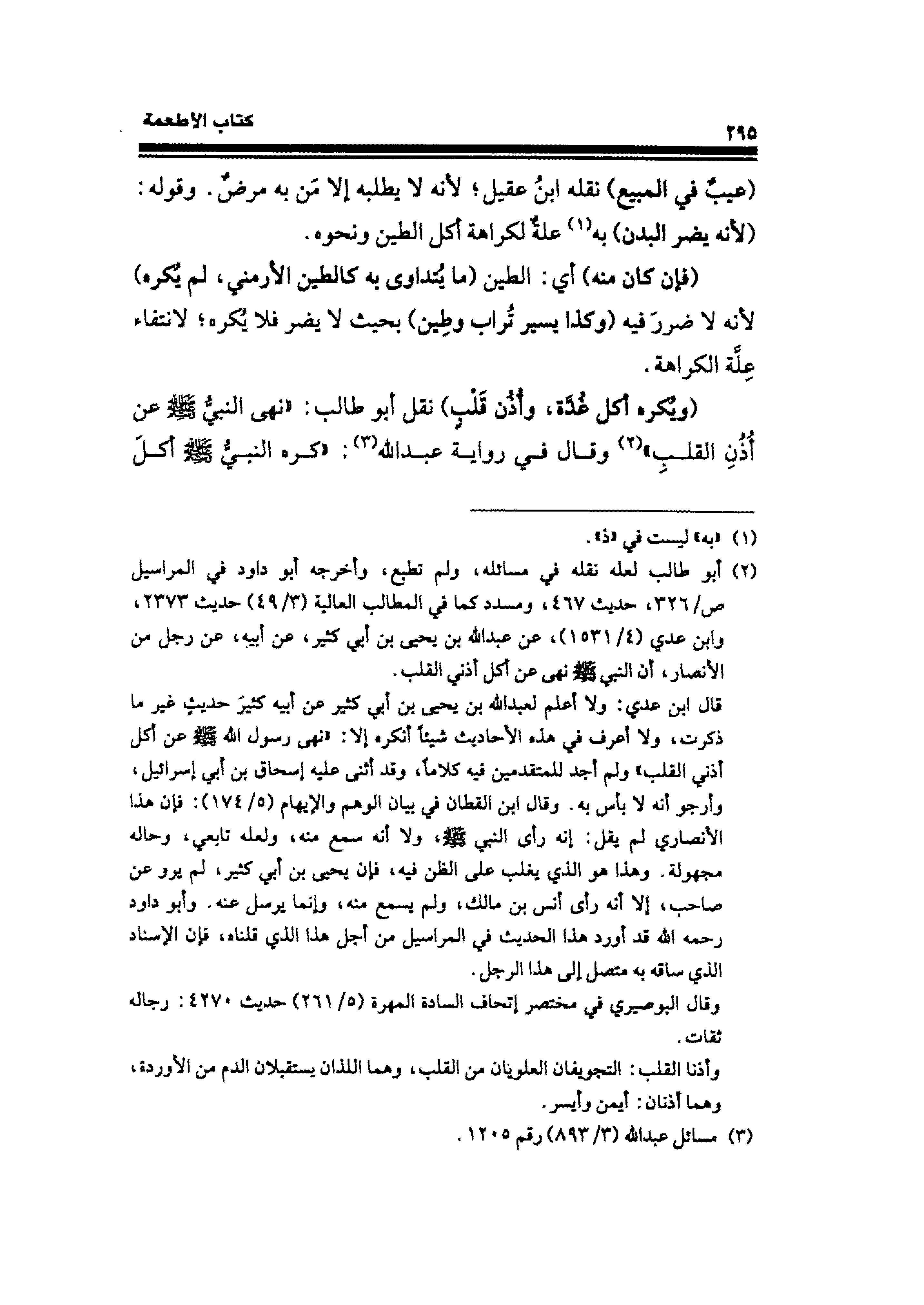 (¬٢) أبو طالب لعله نقله في مسائله، ولم تطبع، وأخرجه أبو داود في المراسيل ص / ٣٢٦، حديث ٤٦٧، ومسدد كما في المطالب العالية (٣/ ٤٩) حديث ٢٣٧٣، وابن عدي (٤/ ١٥٣١)، عن عبد الله بن يحيى بن أبي كثير، عن أبيه، عن رجل من الأنصار، أن النبي - صلى الله عليه وسلم - نهى عن أكل أذني القلب.