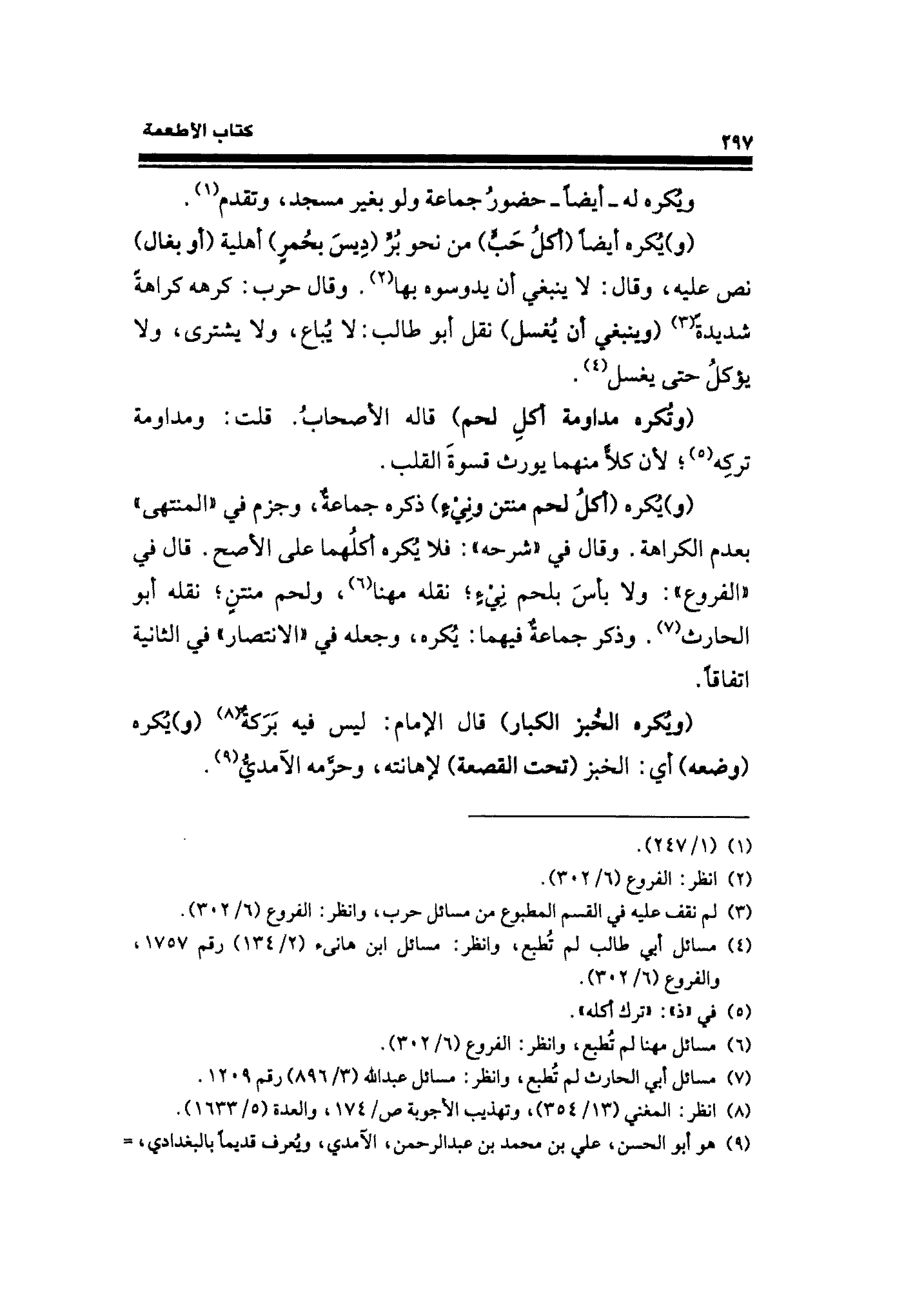 (¬٣) لم نقف عليه في القسم المطبوع من مسائل حرب، وانظر: الفروع (٦/ ٣٠٢).
