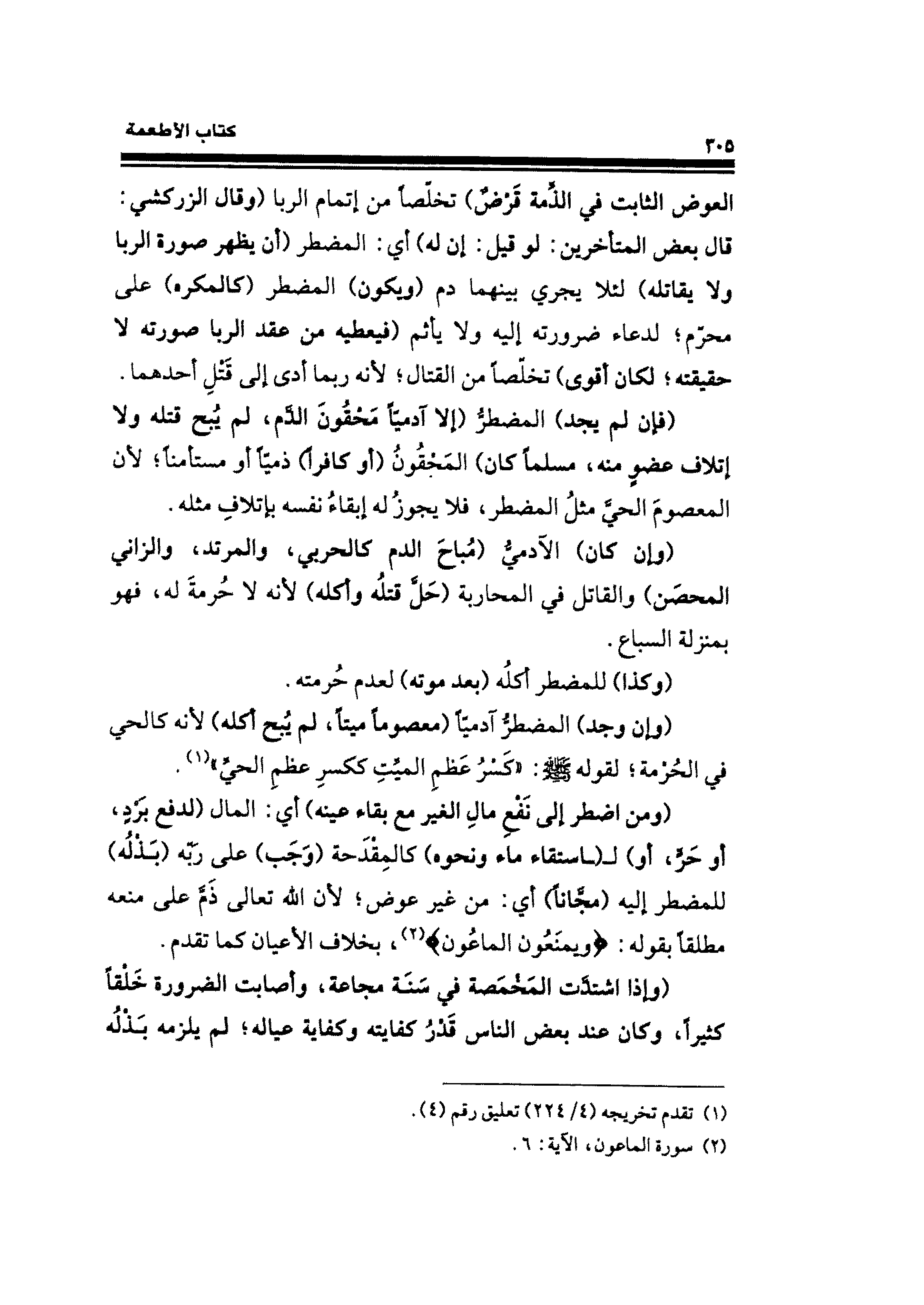 العوض الثابت في الذِّمة قَرْضٌ) تخلّصًا من إتمام الربا (وقال الزركشي: قال بعض المتأخرين: لو قيل: إن له) أي: المضطر (أن يظهر صورة الربا ولا يقاتله) لئلا يجري بينهما دم (ويكون) المضطر (كالمكره) على محرّم؛ لدعاء ضرورته إليه ولا يأثم (فيعطيه من عقد الربا صورته لا حقيقته؛ لكان أقوى) تخلّصًا من القتال؛ لأنه ربما أدى إِلَى قَتْلِ أحدهما.
