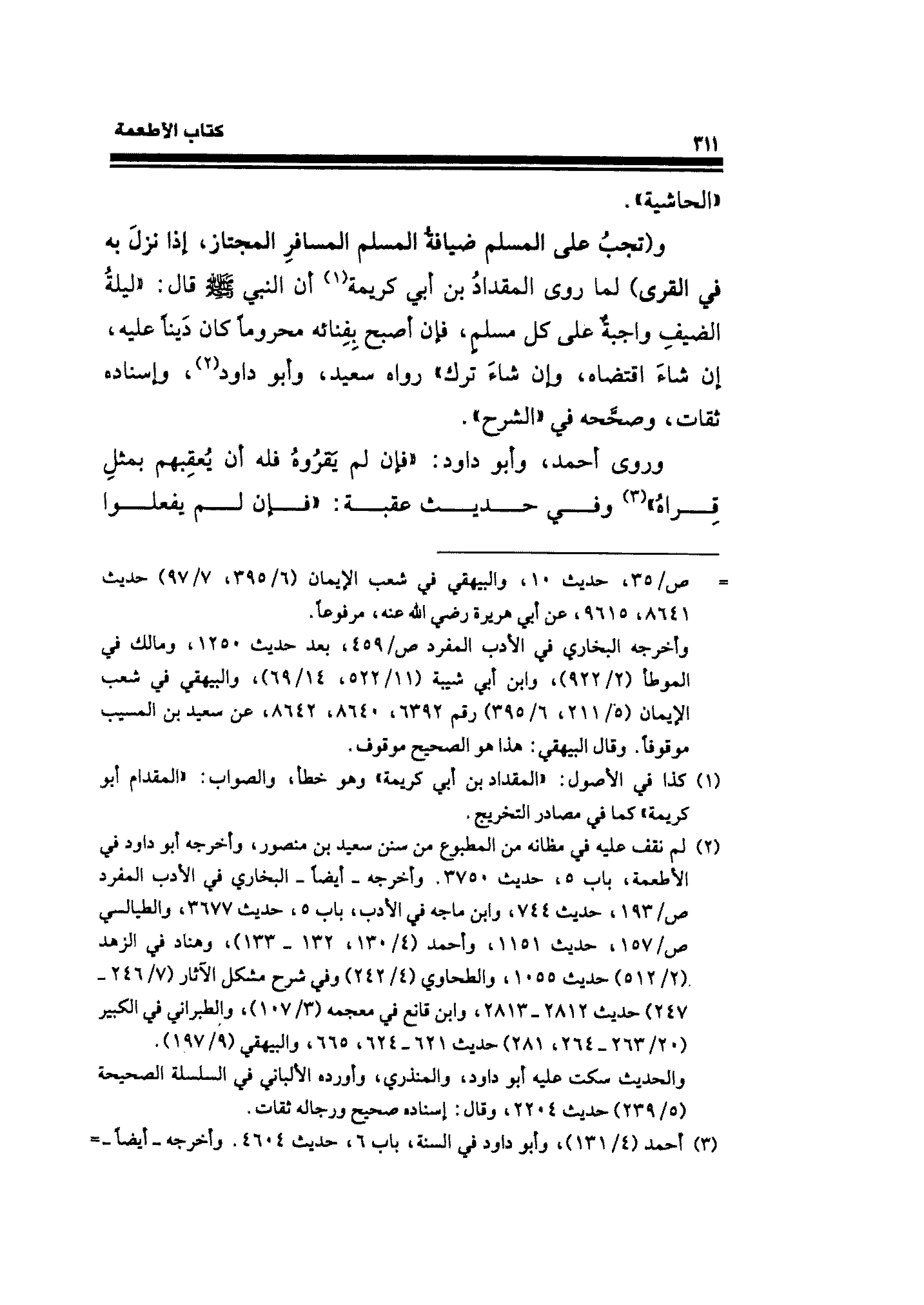 وروى أحمد، وأبو داود: "فإن لم يقروهُ فله أن يُعقِبهم بمثلِ قِراهُ" (¬٣) وفي حديث عقبة: "فإن لم يفعلوا