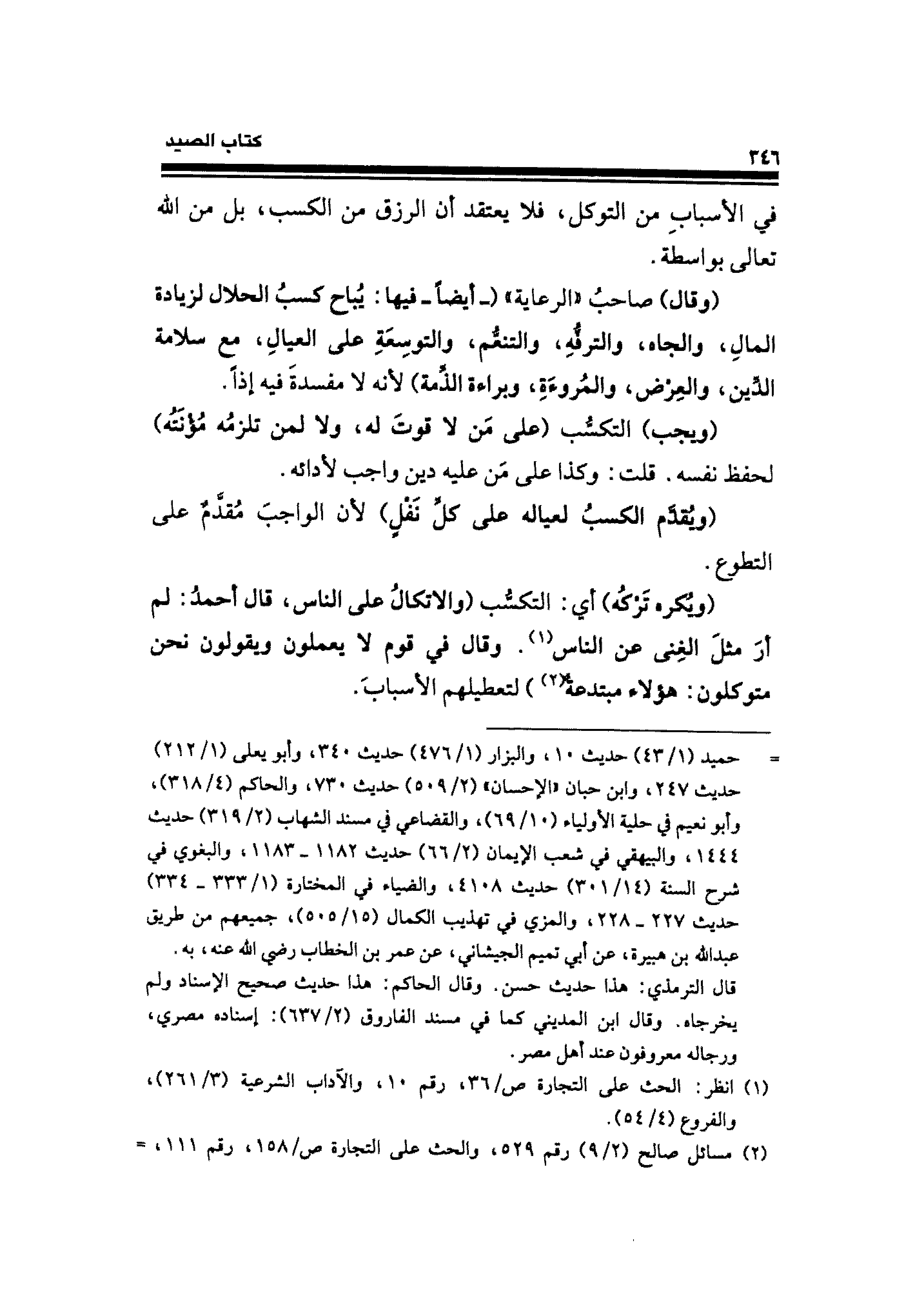 (¬١) انظر: الحث على التجارة ص / ٣٦، رقم ١٠، والآداب الشرعية (٣/ ٢٦١)، والفروع (٤/ ٥٤).