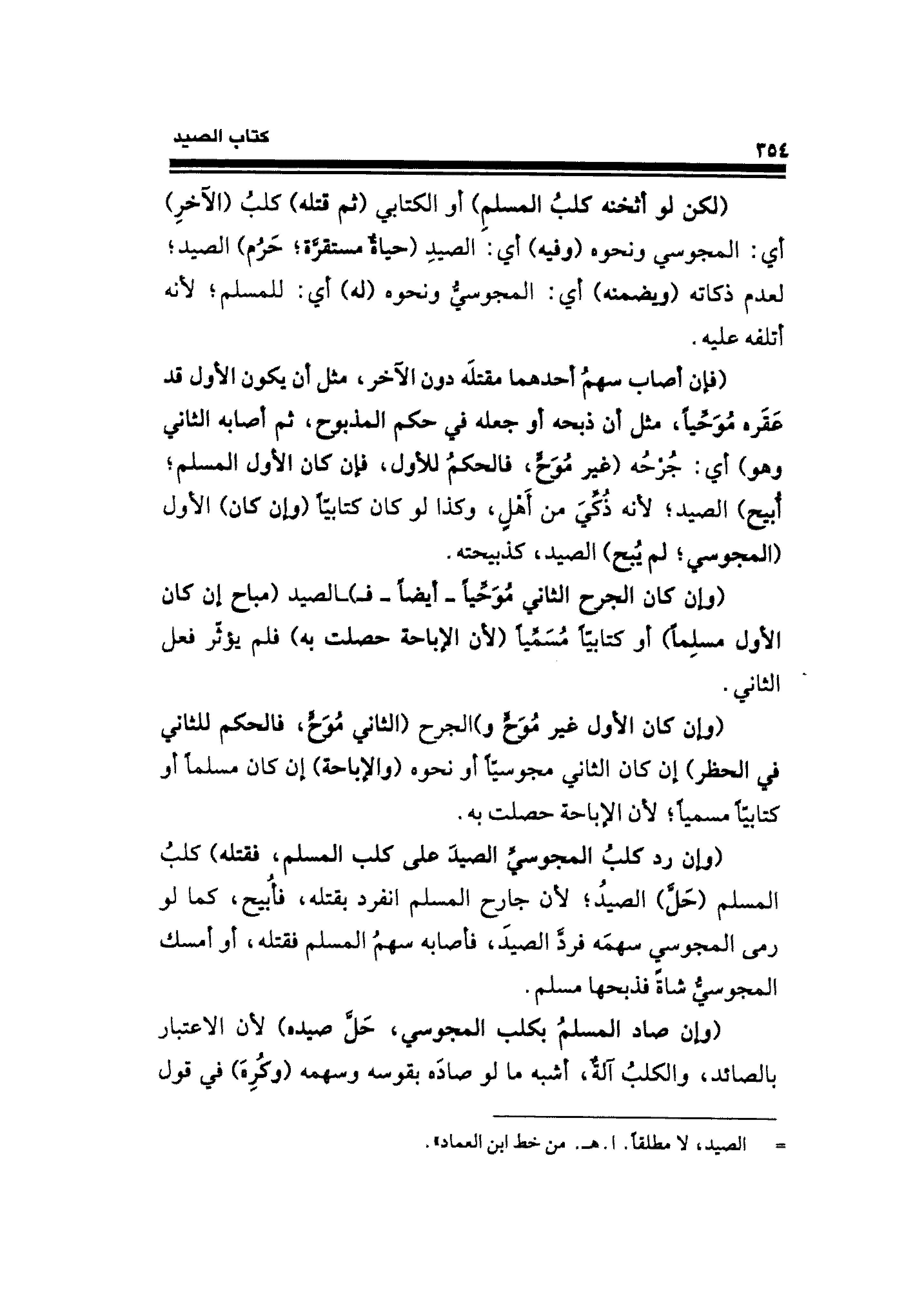 = الصيد، لا مطلقًا. ا. هـ. من خط ابن العماد".