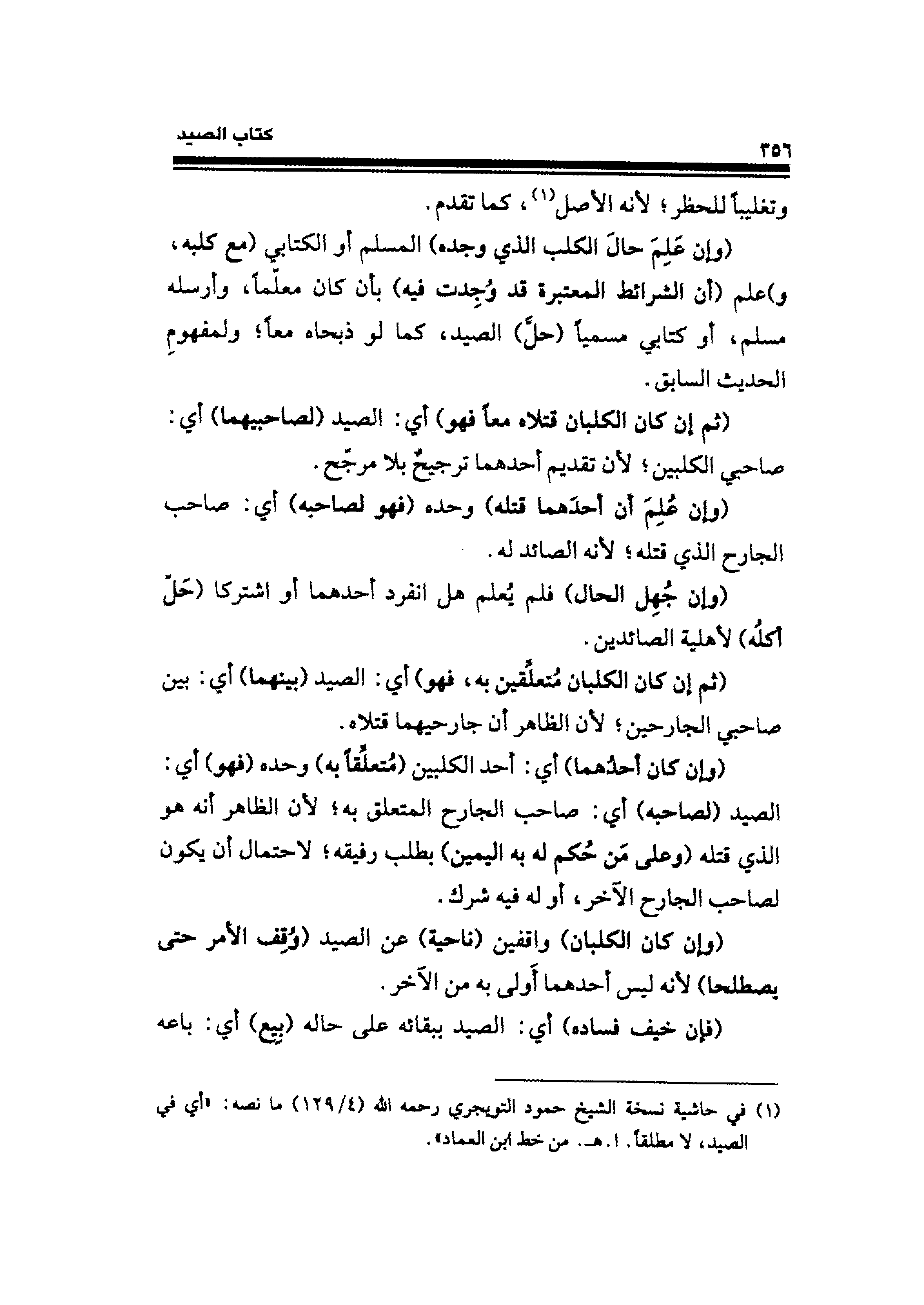 (¬١) في حاشية نسخة الشيخ حمود التويجري رحمه الله (٤/ ١٢٩) ما نصه: "أي في الصيد، لا مطلقًا. ا. هـ. من خط ابن العماد".