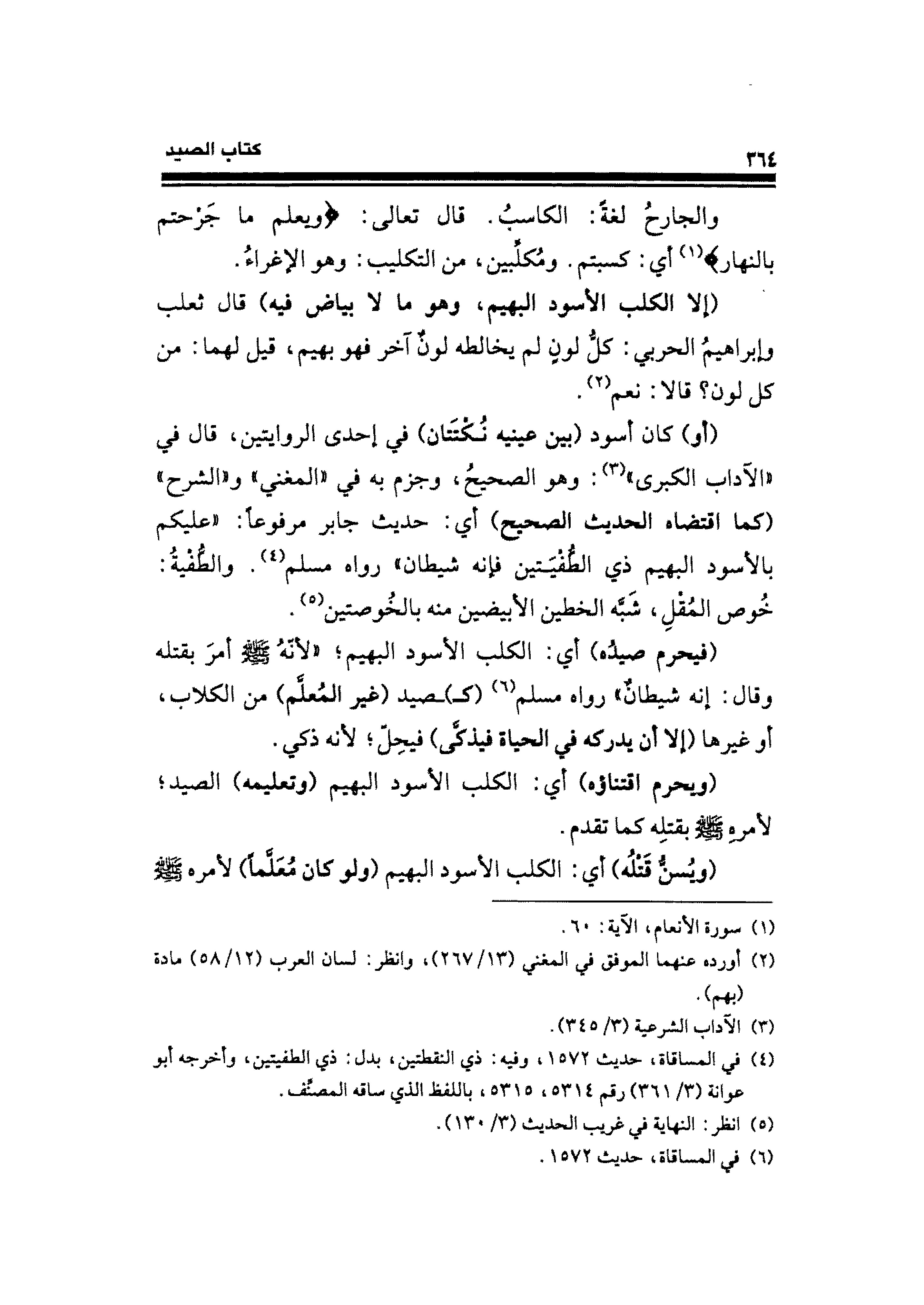والجارحُ لغةً: الكاسبُ. قال تعالى: {وَيَعْلَمُ مَا جَرَحْتُمْ بِالنَّهَارِ} (¬١) أي: كسبتم " ومُكلِّبين، من التكليب: وهو الإغراءُ.