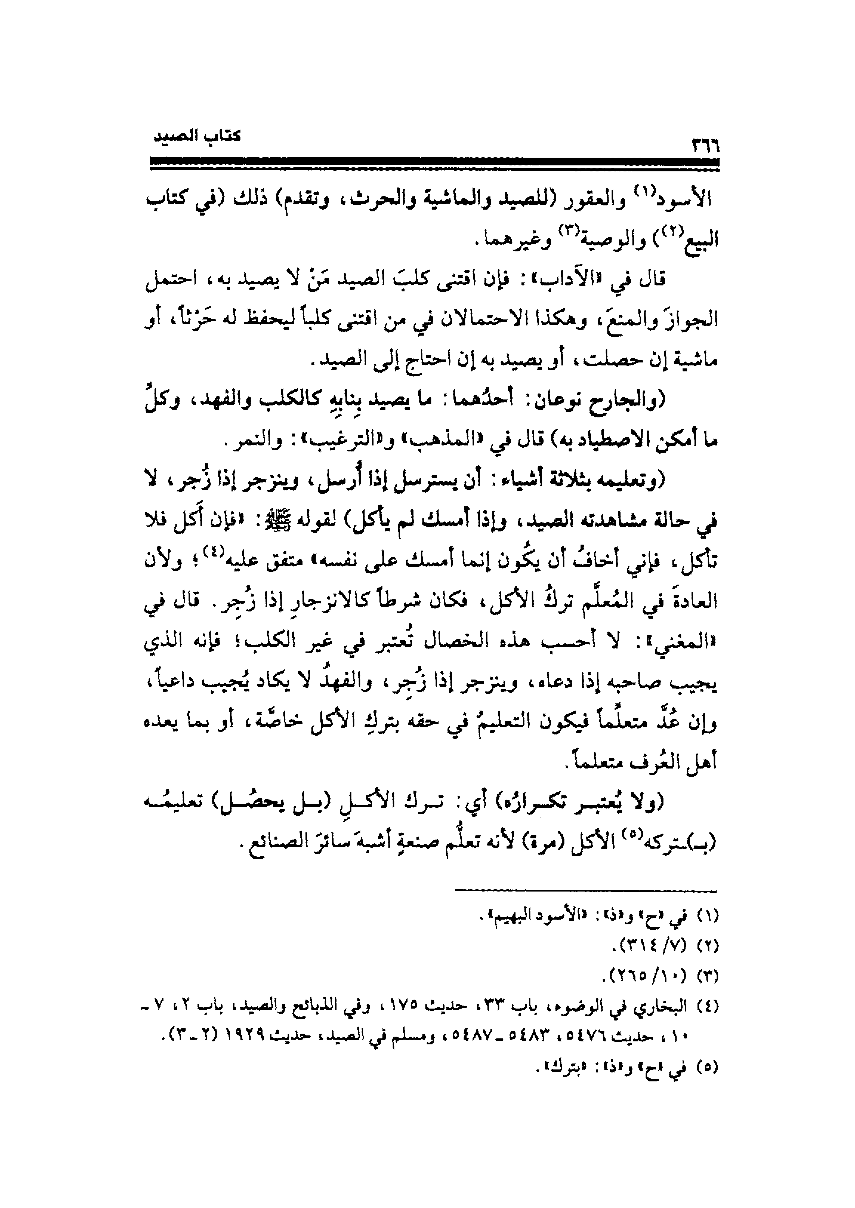 (¬٤) البخاري في الوضوء، باب ٣٣، حديث ١٧٥، وفي الذبائح والصيد" باب ٢، ٧ - ١٠، حديث ٥٤٧٦، ٥٤٨٣ - ٥٤٨٧، ومسلم في الصيد، حديث ١٩٢٩ (٢ - ٣).