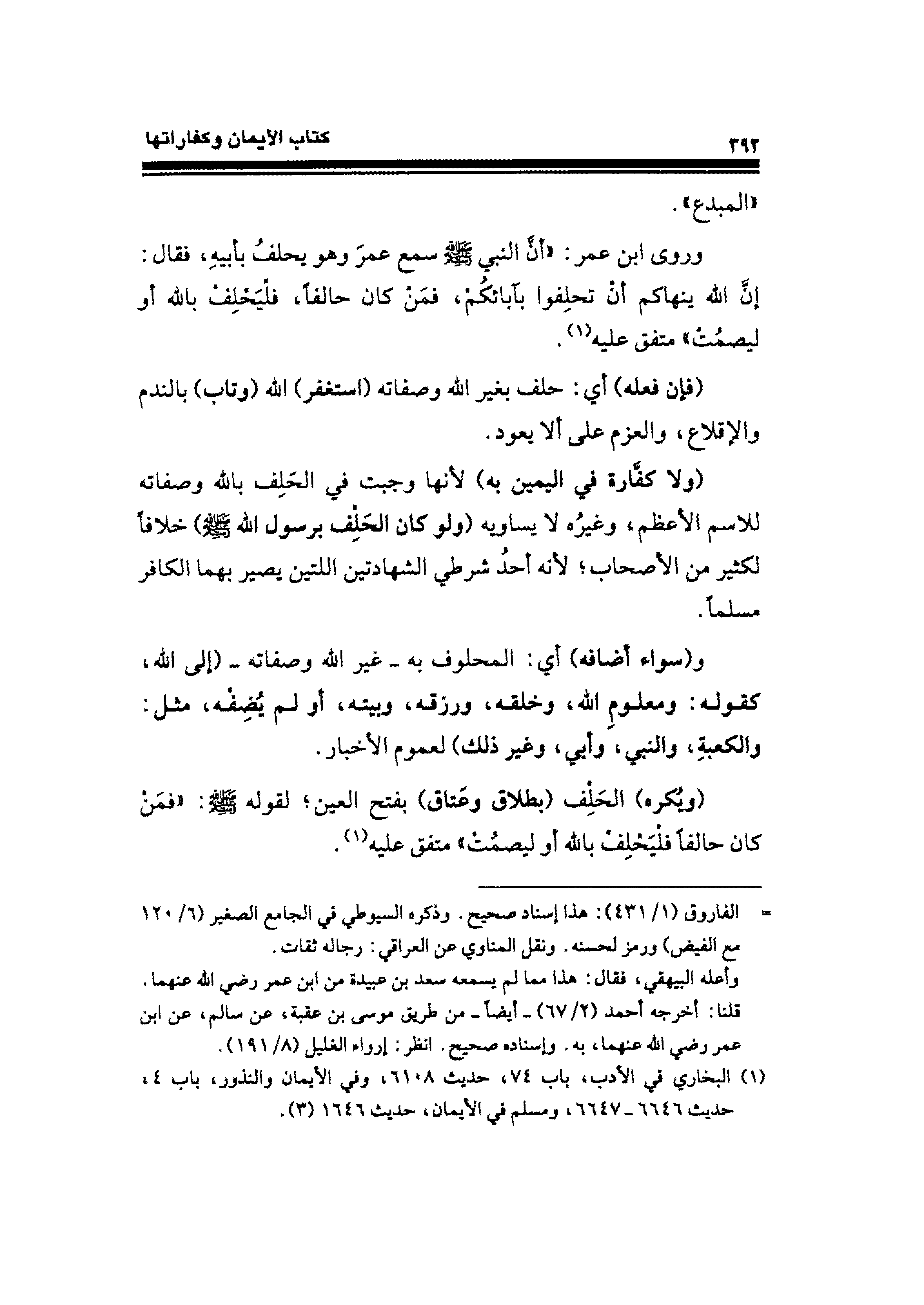 (¬١) البخاري في الأدب، باب ٧٤، حديث ٦١٠٨، وفي الأيمان والنذور، باب ٤، حديث ٦٦٤٦ - ٦٦٤٧، ومسلم في الأيمان، حديث ١٦٤٦ (٣).