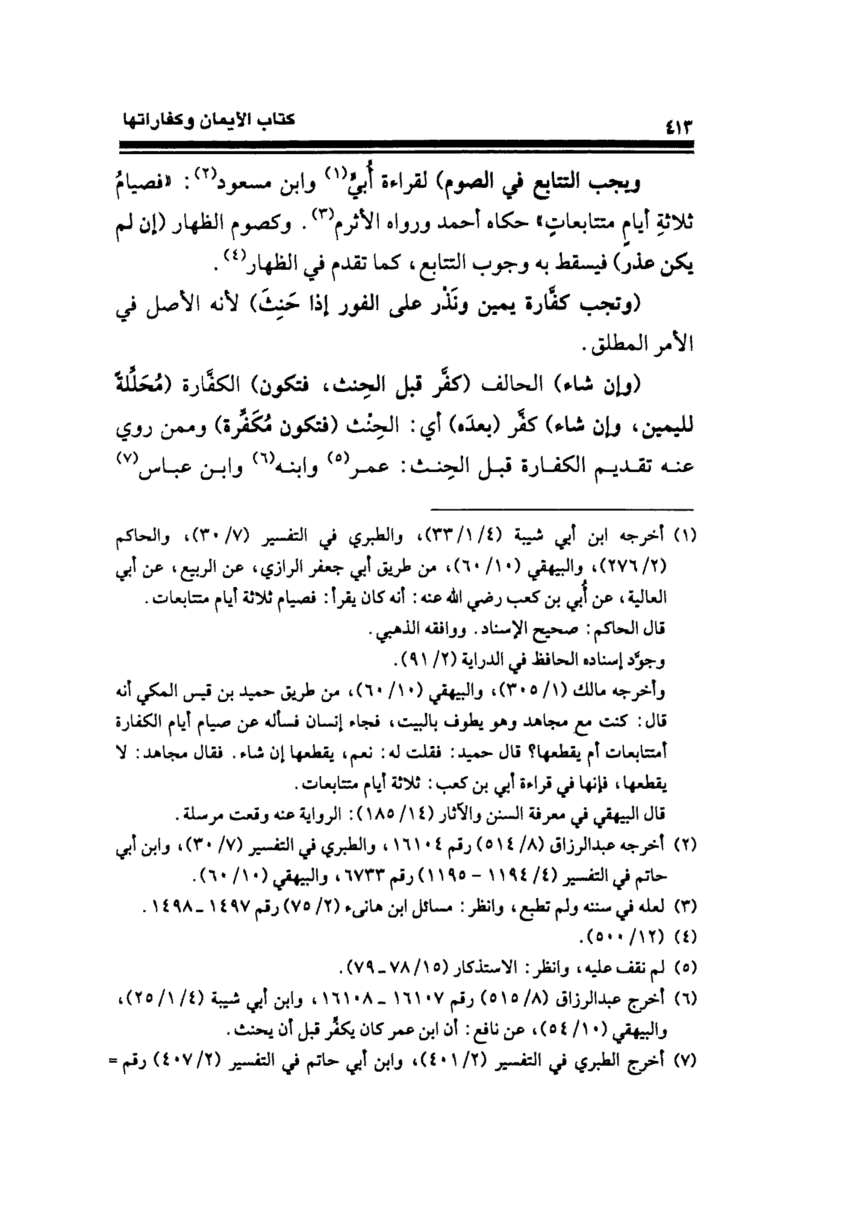 (¬٦) أخرج عبد الرزاق (٨/ ٥١٥) رقم ١٦١٠٧ - ١٦١٠٨، وابن أبي شيبة (٤/ ١ / ٢٥)، والبيهقي (١٠/ ٥٤)، عن نافع: أن ابن عمر كان يكفِّر قبل أن يحنث.