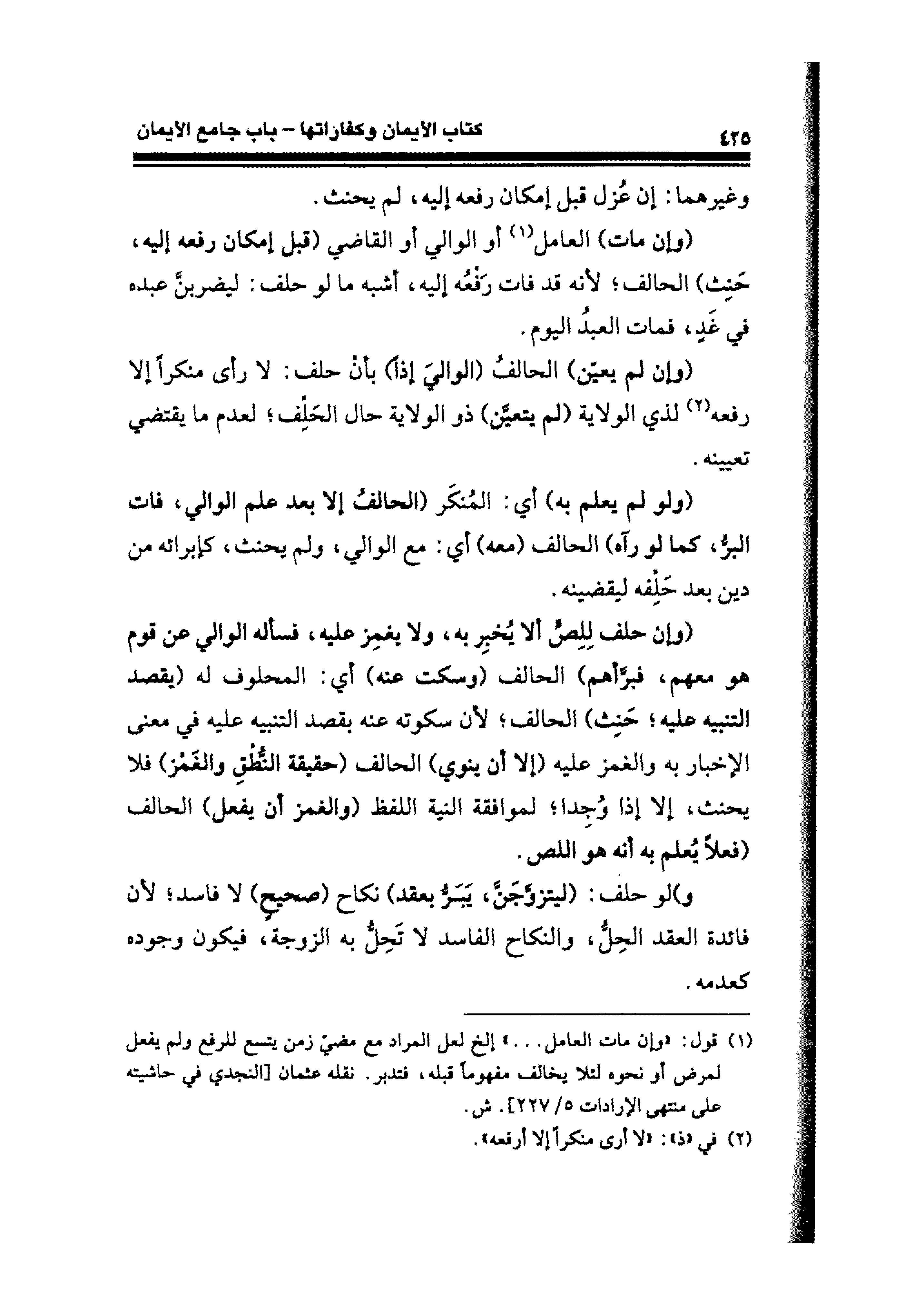 (وإن لم يعيّن) الحالفُ (الواليَ إذًا) بأنْ حلف: لا رأى منكرًا إلا رفعه (¬٢) للذي الولاية (لم يتعيَّن) ذو الولاية حال الحَلِف؛ لعدم ما يقتضي تعيينه.