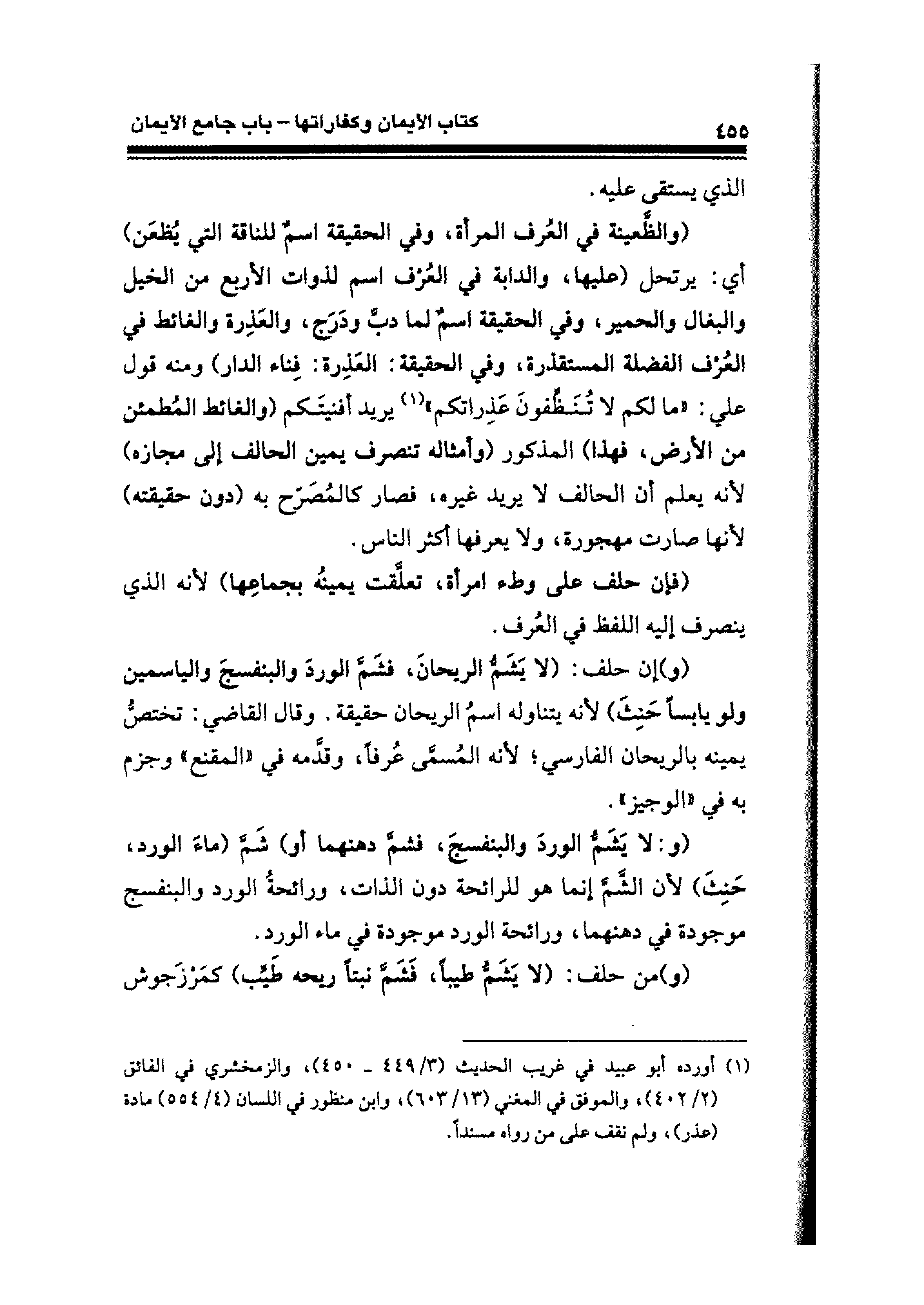 (¬١) أورده أبو عبيد في غريب الحديث (٣/ ٤٤٩ - ٤٥٠)، والزمخشري في الفائق (٢/ ٤٠٢)، والموفق في المغني (١٣/ ٦٠٣)، وابن منظور في اللسان (٤/ ٥٥٤) مادة (عذر)، ولم نقف على من رواه مسندًا.