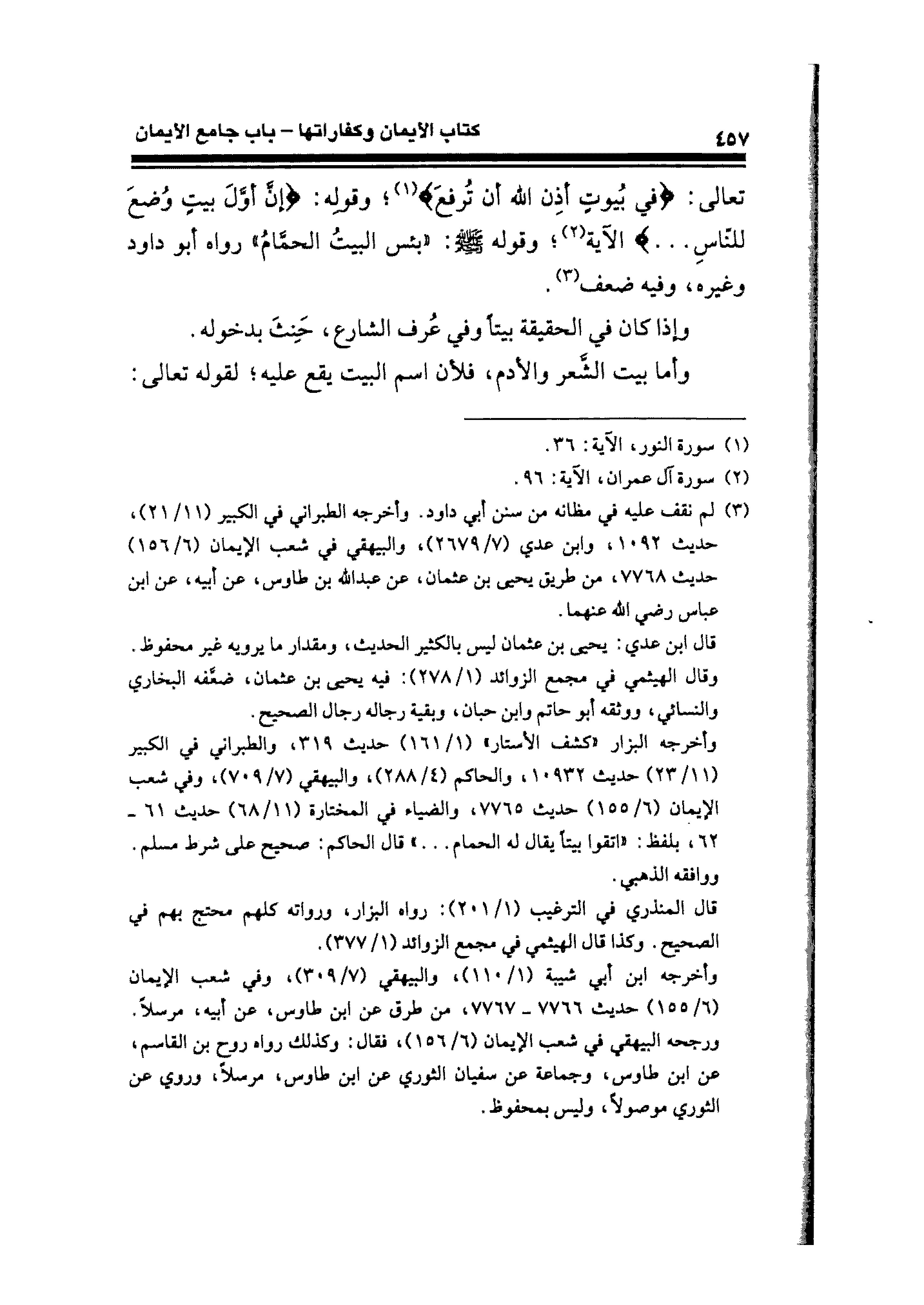 تعالى: {فِي بُيُوتٍ أَذِنَ اللَّهُ أَنْ تُرْفَعَ} (¬١)؛ وقول: {إِنَّ أَوَّلَ بَيتٍ وُضِعَ لِلنَّاسِ ... } الآية (¬٢)؛ وقوله - صلى الله عليه وسلم -: "بئس البيتُ الحمَّام" رواه أبو داود وغيره، وفيه ضعف (¬٣).