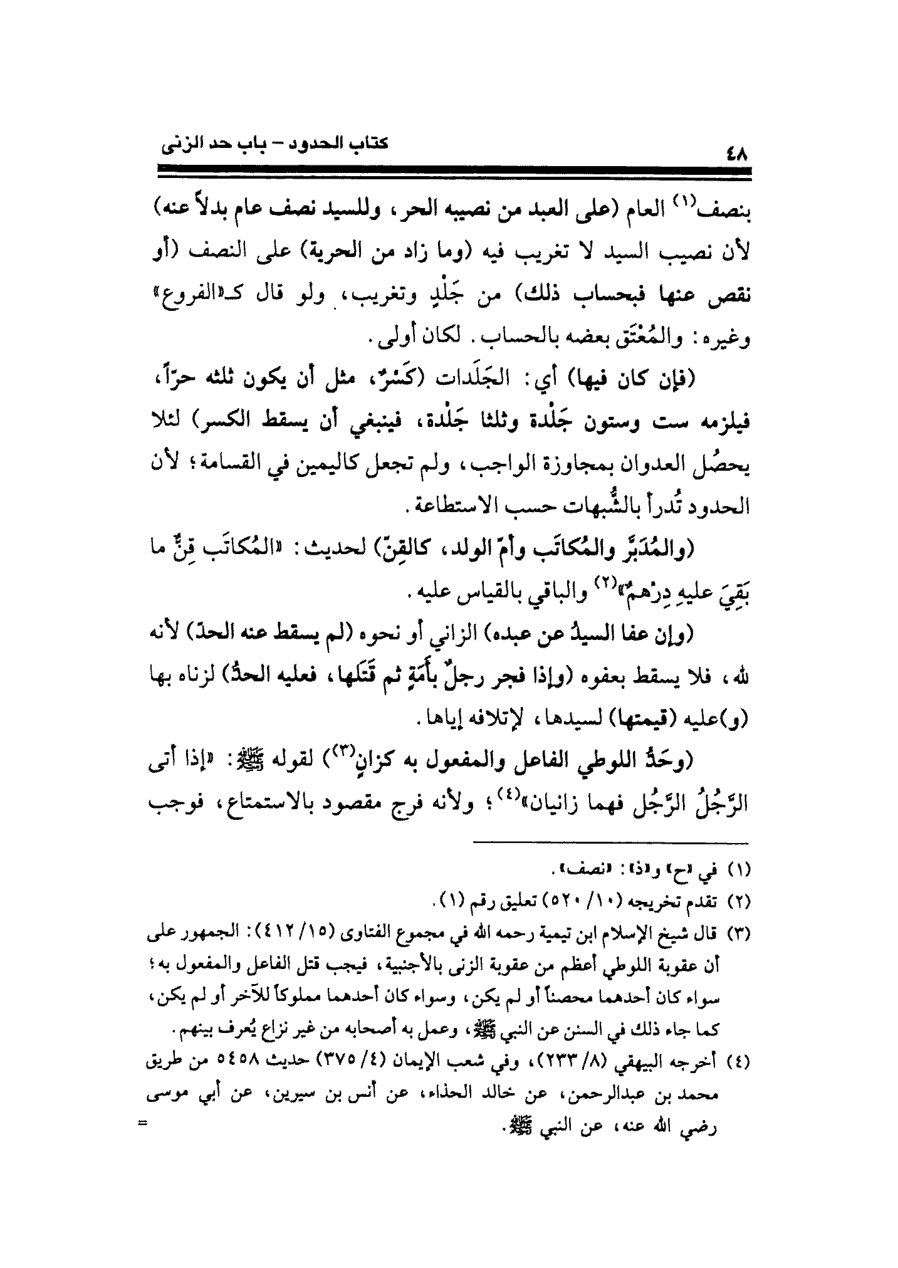 (¬٣) قال شيخ الإسلام ابن تيمية رحمه الله في مجموع الفتاوى (١٥/ ٤١٢): الجمهور على أن عقوبة اللوطي أعظم من عقوبة الزنى بالأجنبية، فيجب قتل الفاعل والمفعول به؛ سواء كان أحدهما محصنًا أو لم يكن، وسواء كان أحدهما مملوكًا للآخر أو لم يكن، كما جاء ذلك في السنن عن النبي - صلى الله عليه وسلم -، وعمل به أصحاب من غير نزاع يُعرف بينهم.