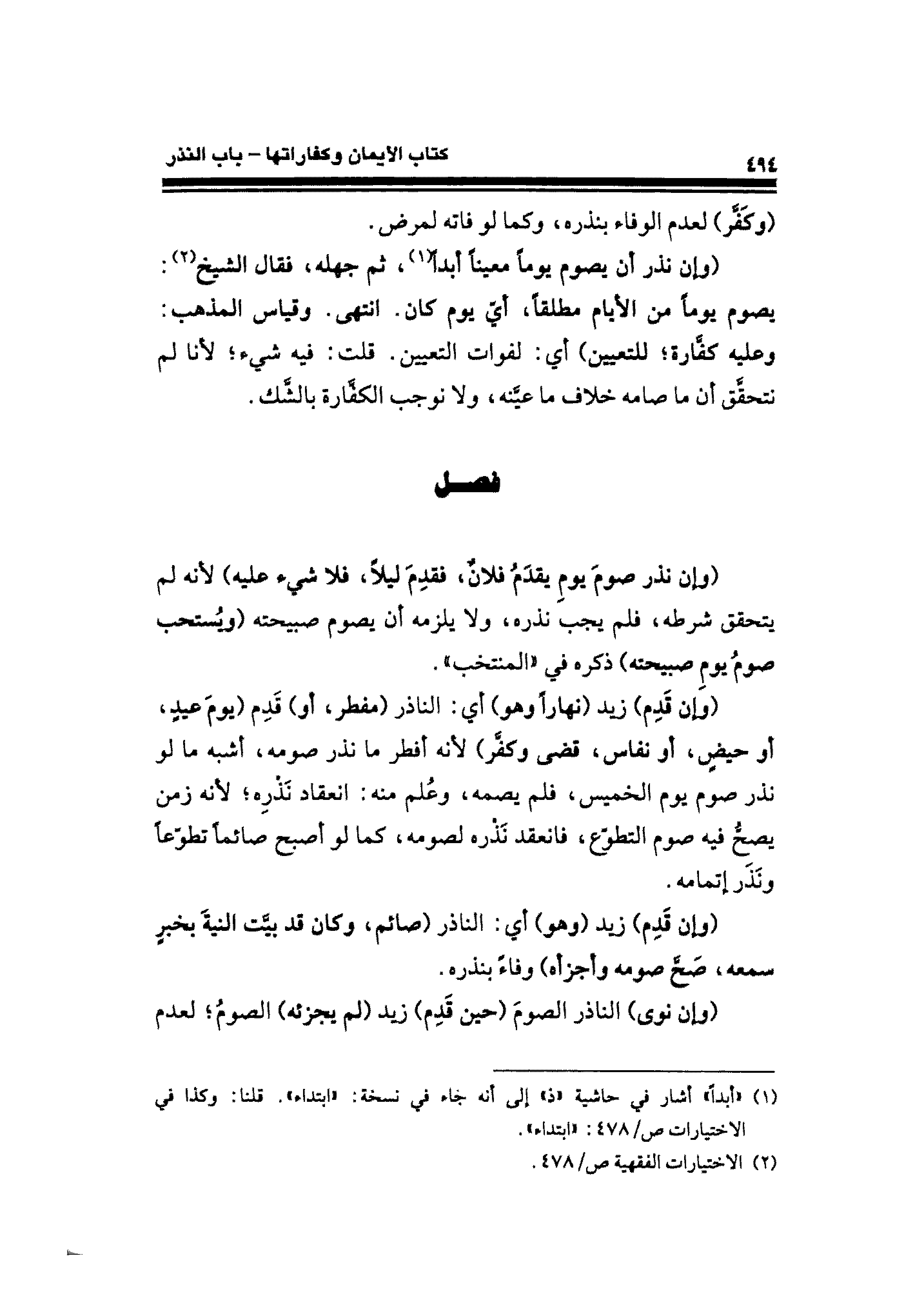 (¬٢) الاختيارات الفقهية ص / ٤٧٨.
