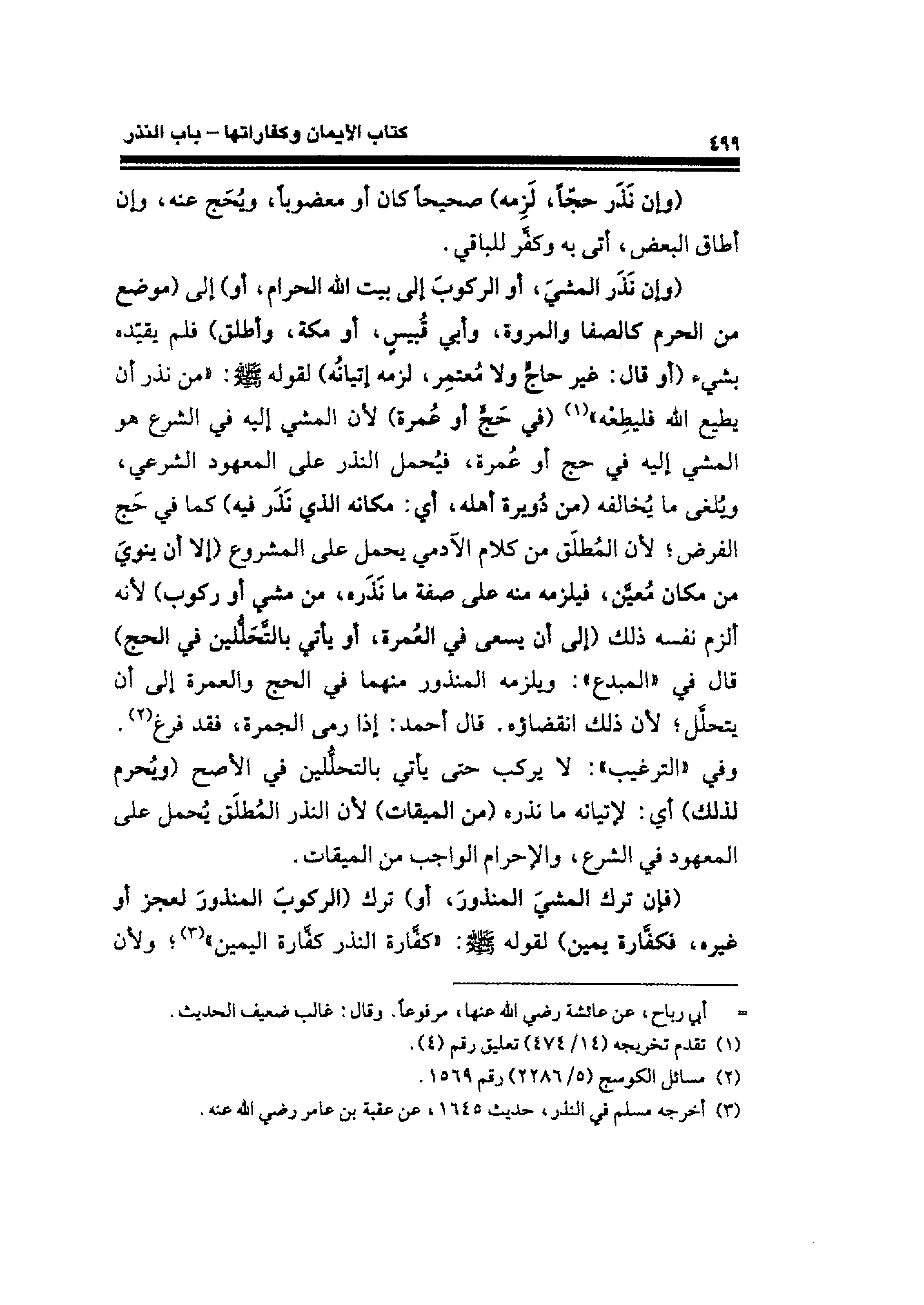 (¬٣) أخرجه مسلم في النذر، حديث ١٦٤٥، عن عقبة بن عامر رضي الله عنه.