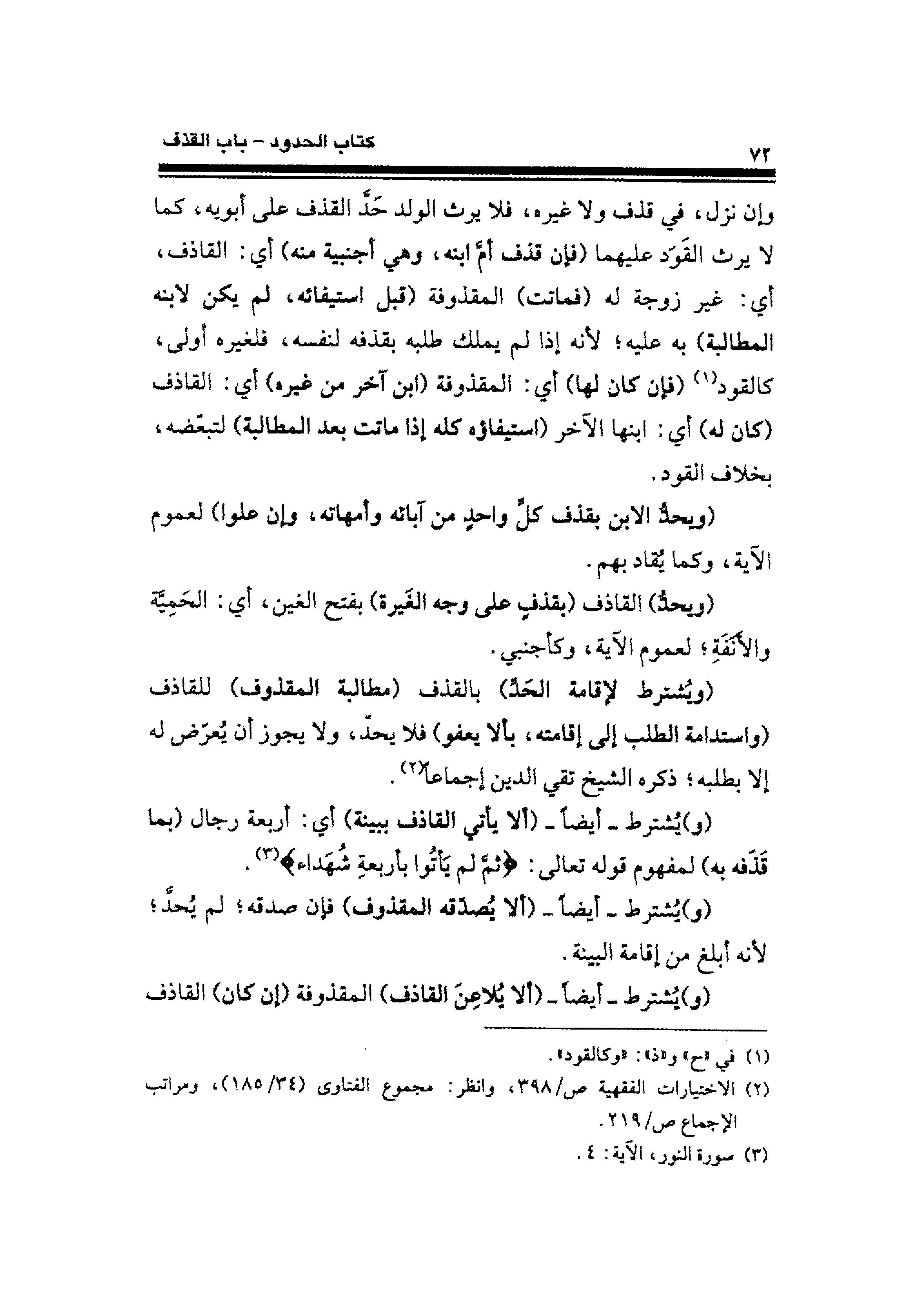 (¬٢) الاختيارات الفقهية ص / ٣٩٨، وانظر: مجموع الفتاوى (٣٤/ ١٨٥)، ومراتب الإجماع ص / ٢١٩.
