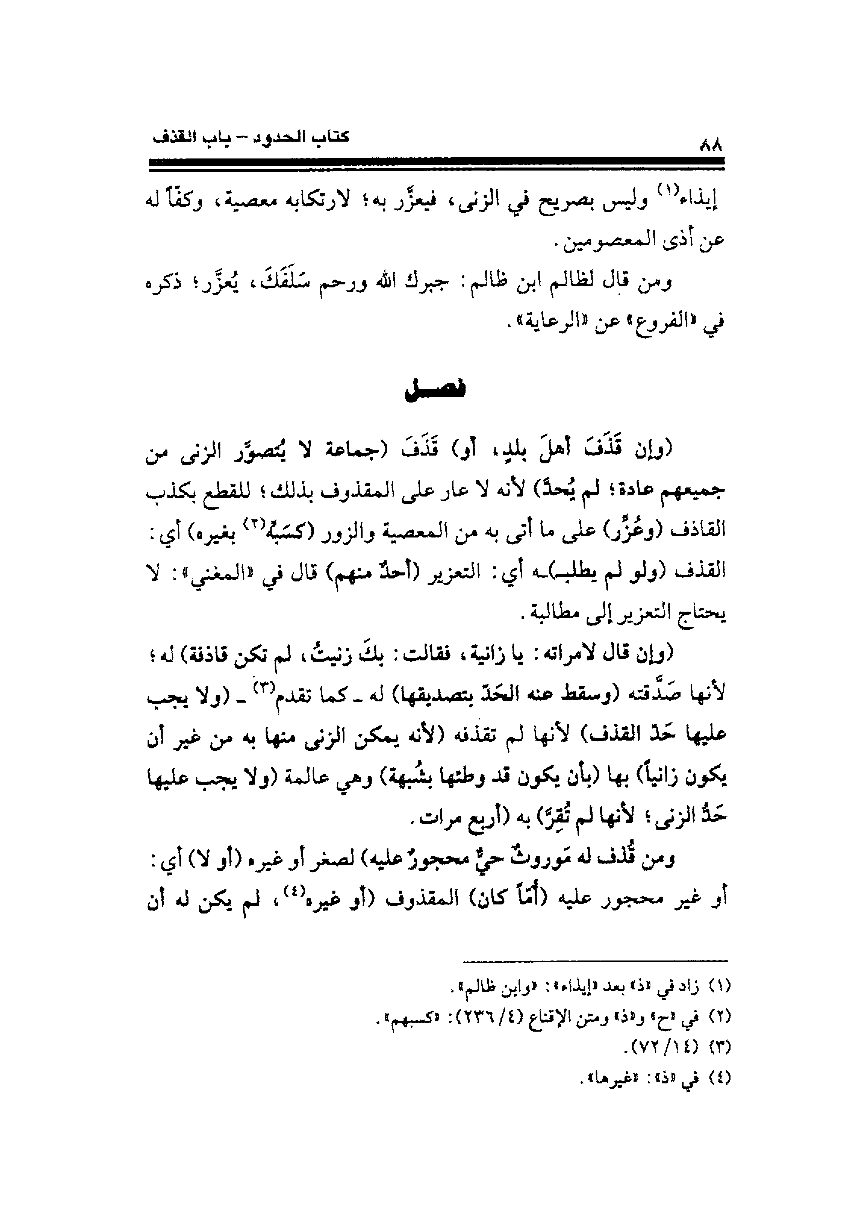 إيذاء (¬١) وليس بصريح في الزنى، فيعزَّر به؛ لارتكابه معصية، وكفًّا له عن أذى المعصومين.