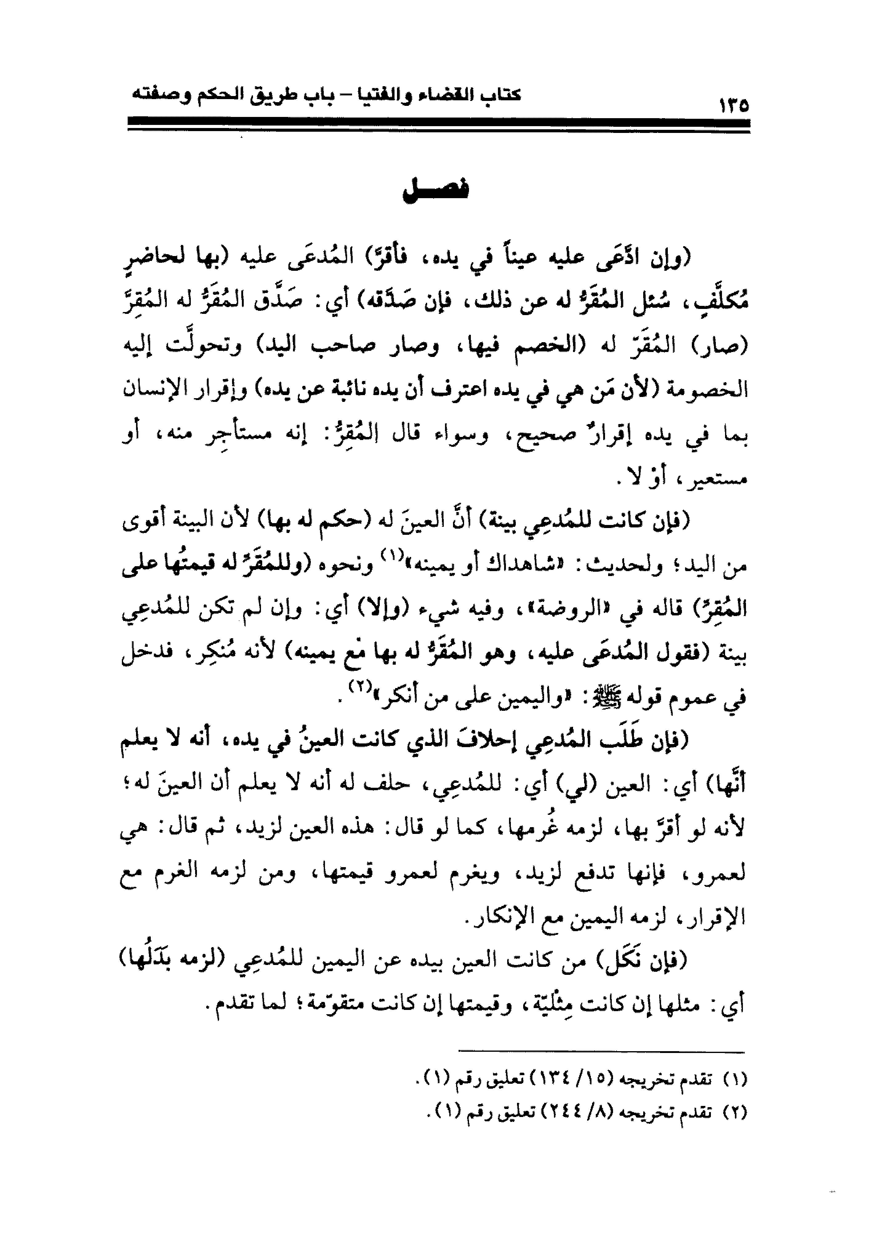 (وإن ادَّعَى عليه عبنًا في بده، فأقرَّ) المُدعَى عليه (بها لحاضرٍ مُكلفٍ، سئل المُقَرُّ له عن ذلك، فإن صَدقه) أي: صَدق المُقَر له. المُقِرَّ (صار) المُقَر له (الخصم فيها، لي صار صاحب اليد) وتحولت إليه الخصومة (لأن من هي في يده اعترف أن يده نائبة عن يده) وإقرار الإنسان بما في يده إقرار صحيح، وسراء قال المُقِر: إنه مستأجِر منه، أو مستعير، أو لا.