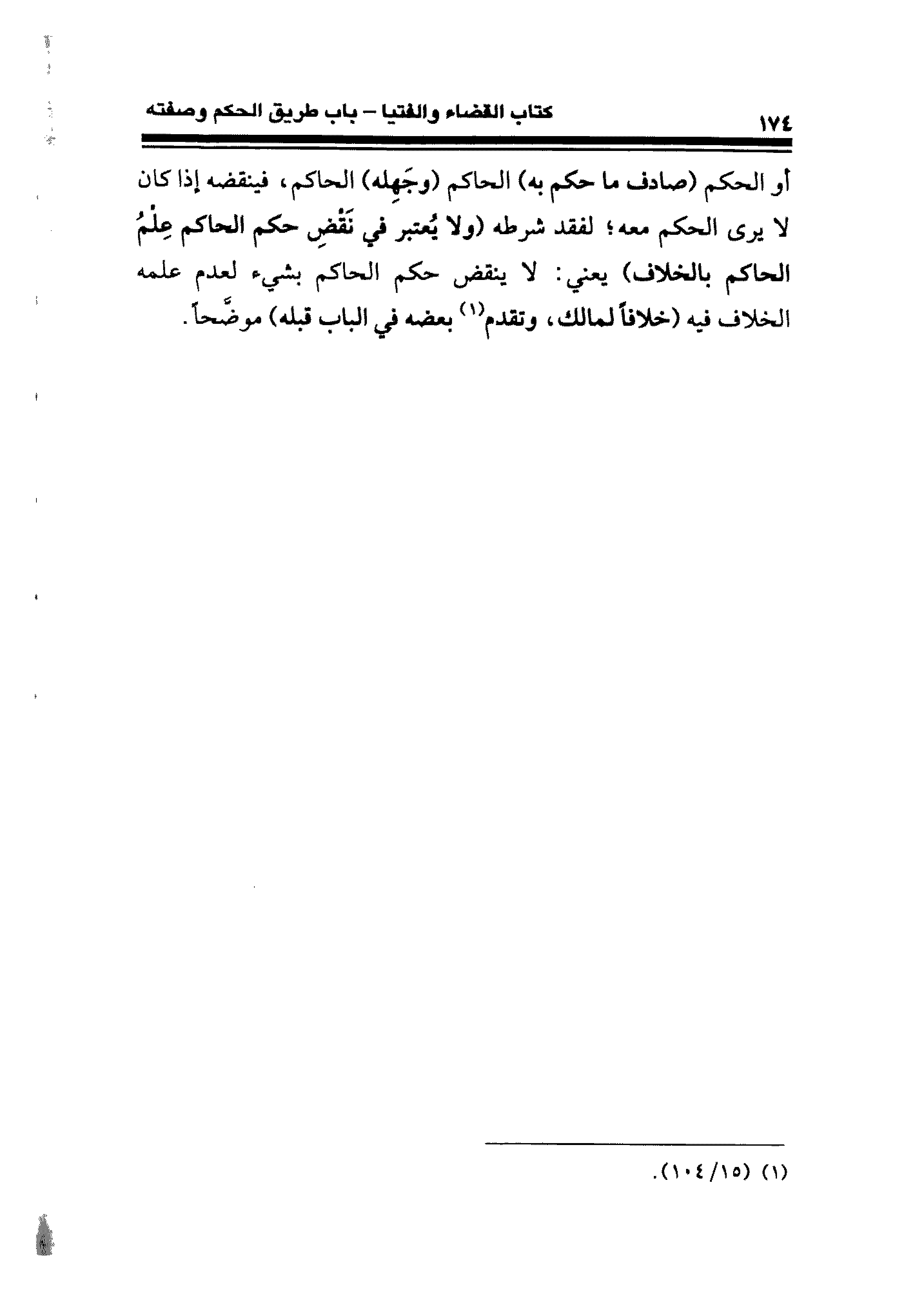 أو الحكم (صادف ما حكم به) الحاكم (وجَهِله) الحاكم، فينقضه إذا كان لا يرى الحكم معه؛ لفقد شرطه (ولا يُعتبر في نَقْضِ حكم الحاكم عِلْمُ الحاكم بالخلاف) بعني: لا ينقض حكم الحاكم بشيء لعدم علمه الخلاف فيه (خلافًا لمالك، وتقدم (¬١) بعضه في الباب قبله) موضَّحًا.