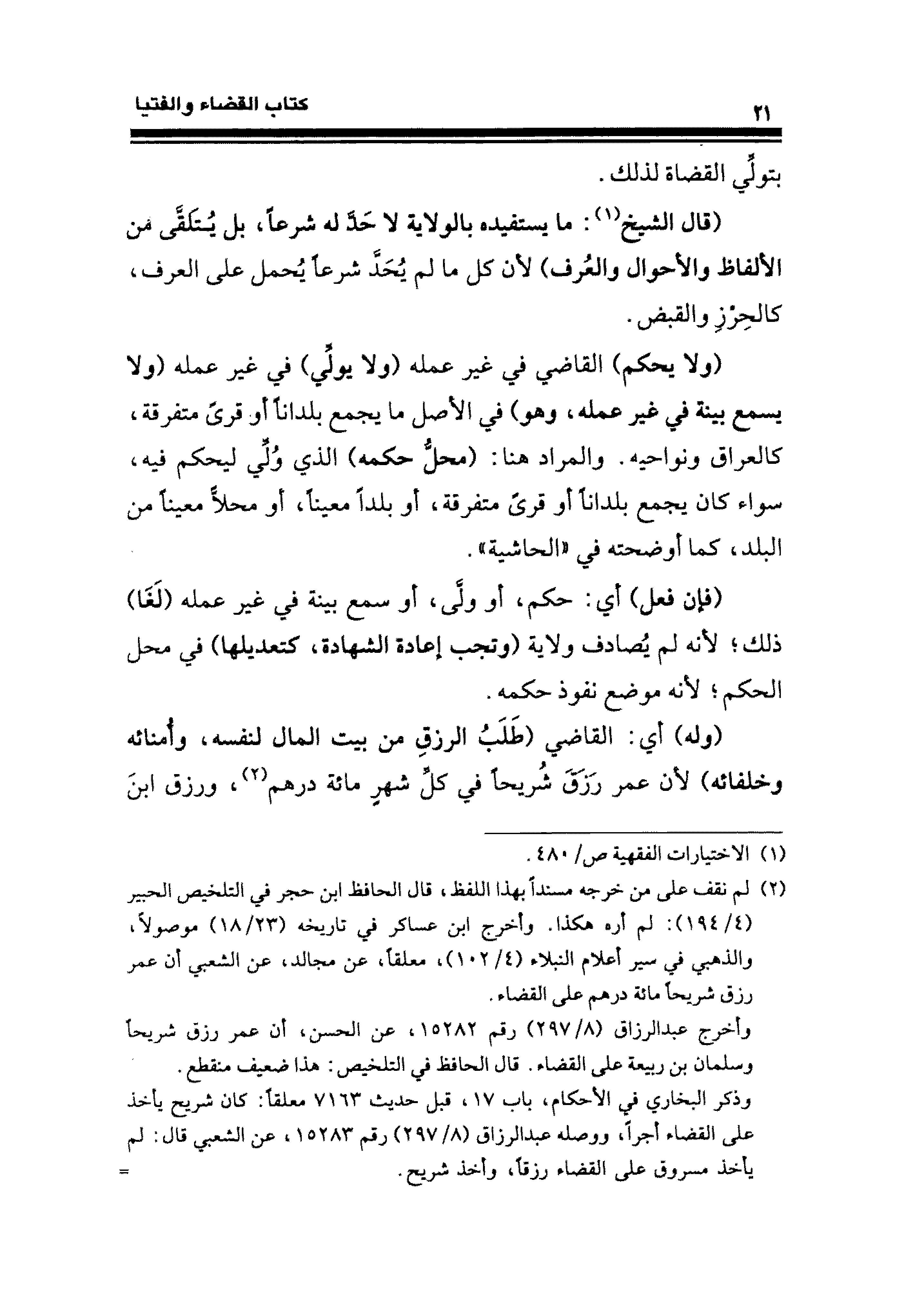 وأخرج عبد الرزاق (٨/ ٢٩٧) رقم ١٥٢٨٢، عن الحسن، أن عمر رزق شريحا وسلمان بن ربيعة على القضاء. قال الحافظ في التلخيص: هذا ضعيف منقطع.