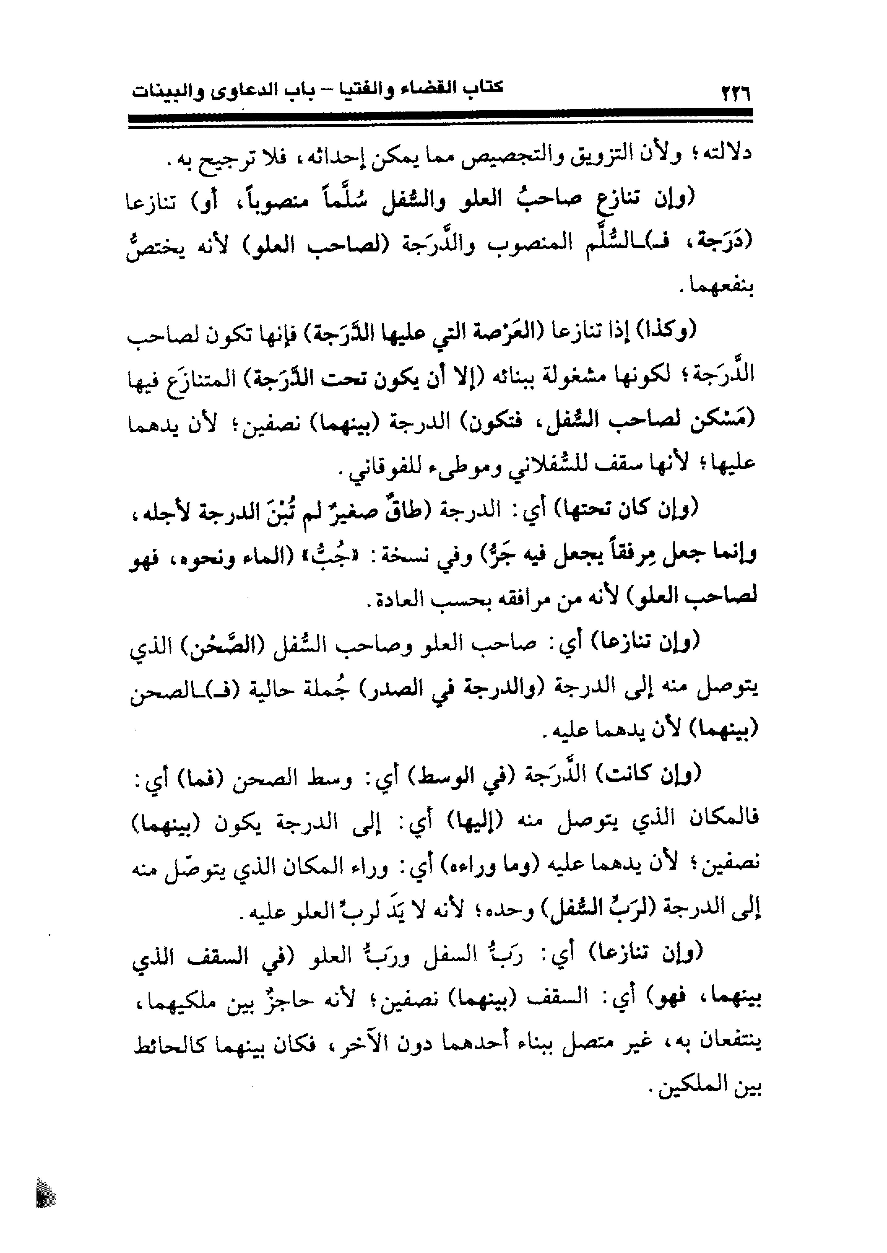 (وإن تنارع صاحبُ العلو والسُّفل سُلَّمًا منصوبًا، أو) تنازعا (دَرَجة، فـ) ـالسُّلَّم المنصوب والدَّرَجة (لصاحب العلو) لأنه يختصُّ بنفعهما.