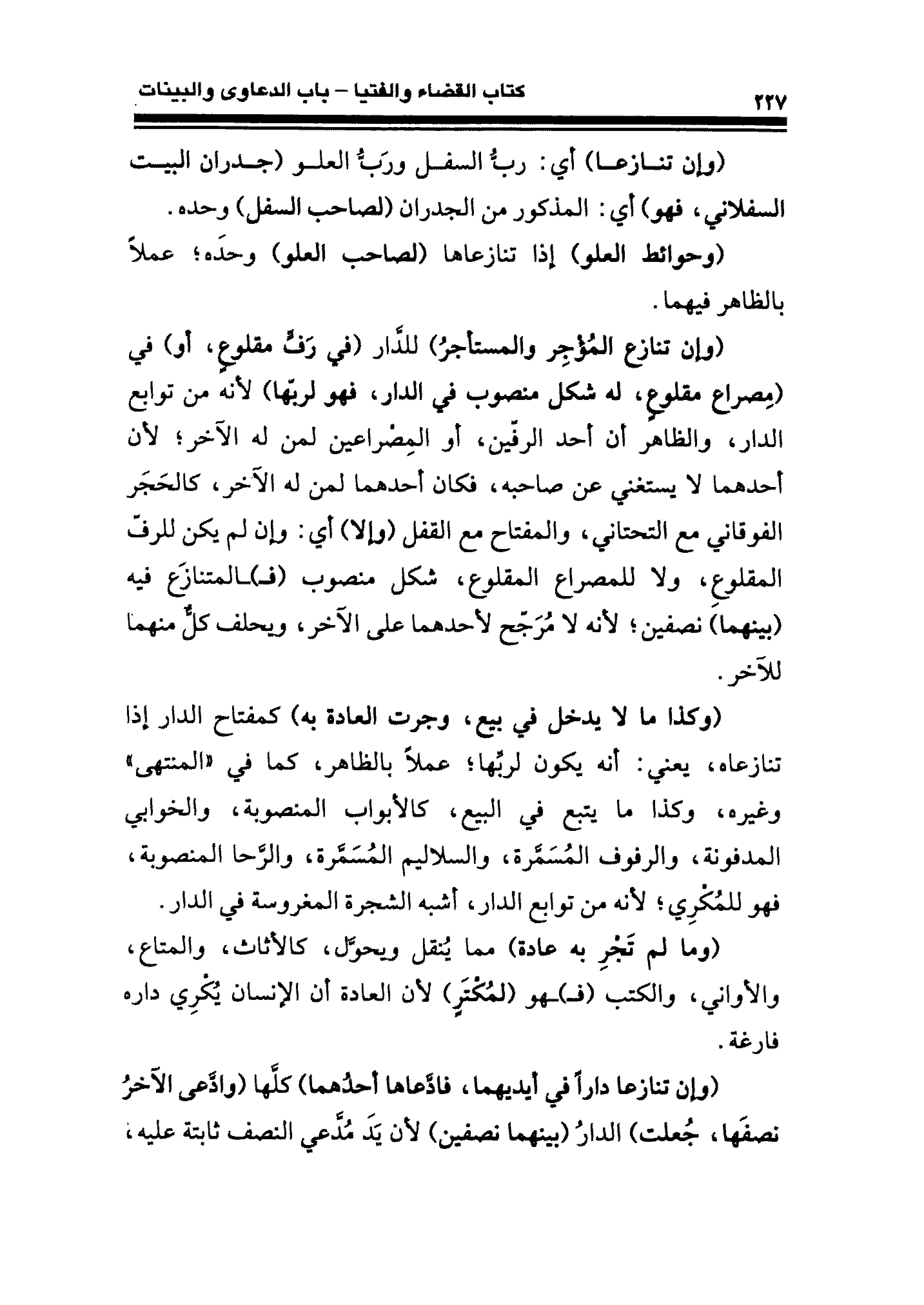(وحوائط العلو) إذا تنازعاها (لصاحب العلو) وحدَه؛ عملًا بالظاهر فيهما.