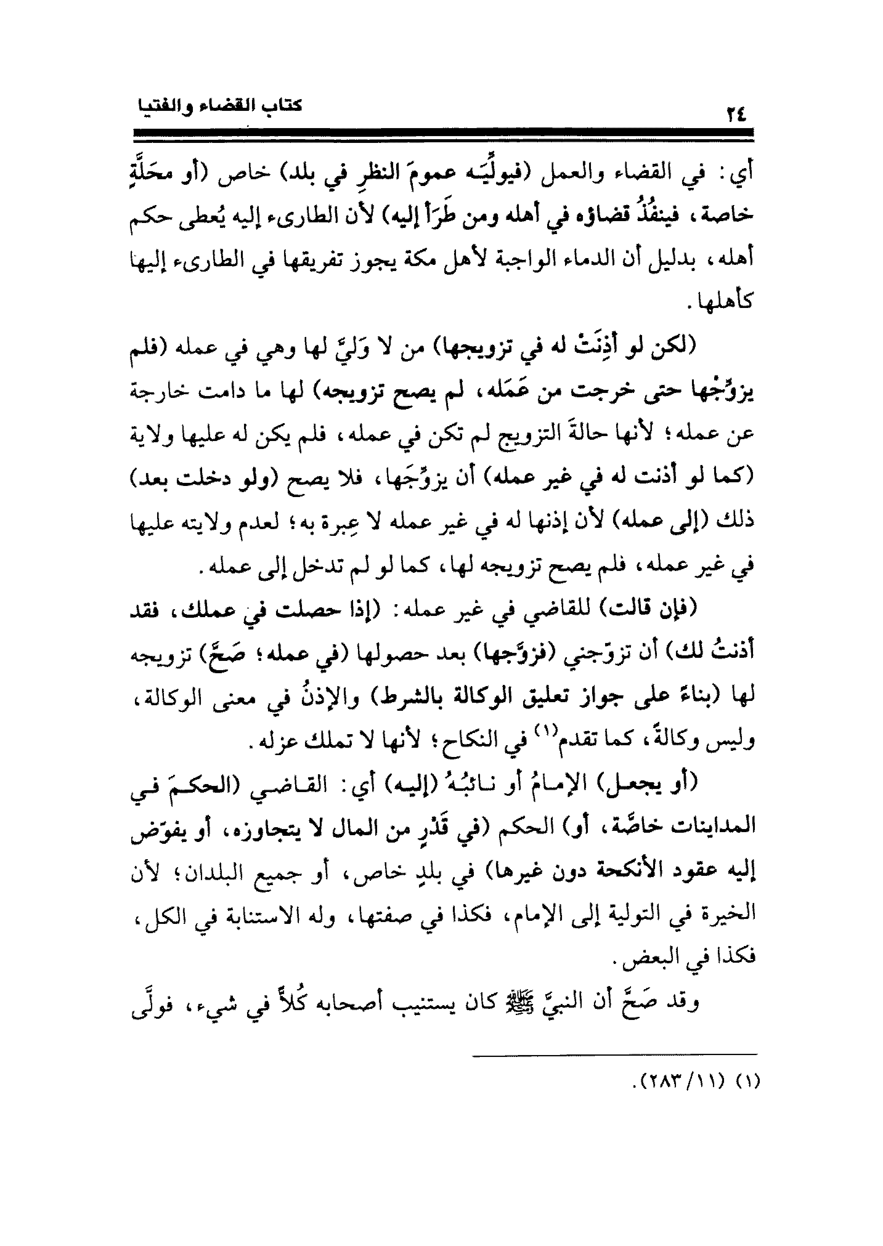 وقد صَحَّ أن النبيَّ - صلى الله عليه وسلم - كان يستنيب أصحابه كُلأً في شيء، فولَّى