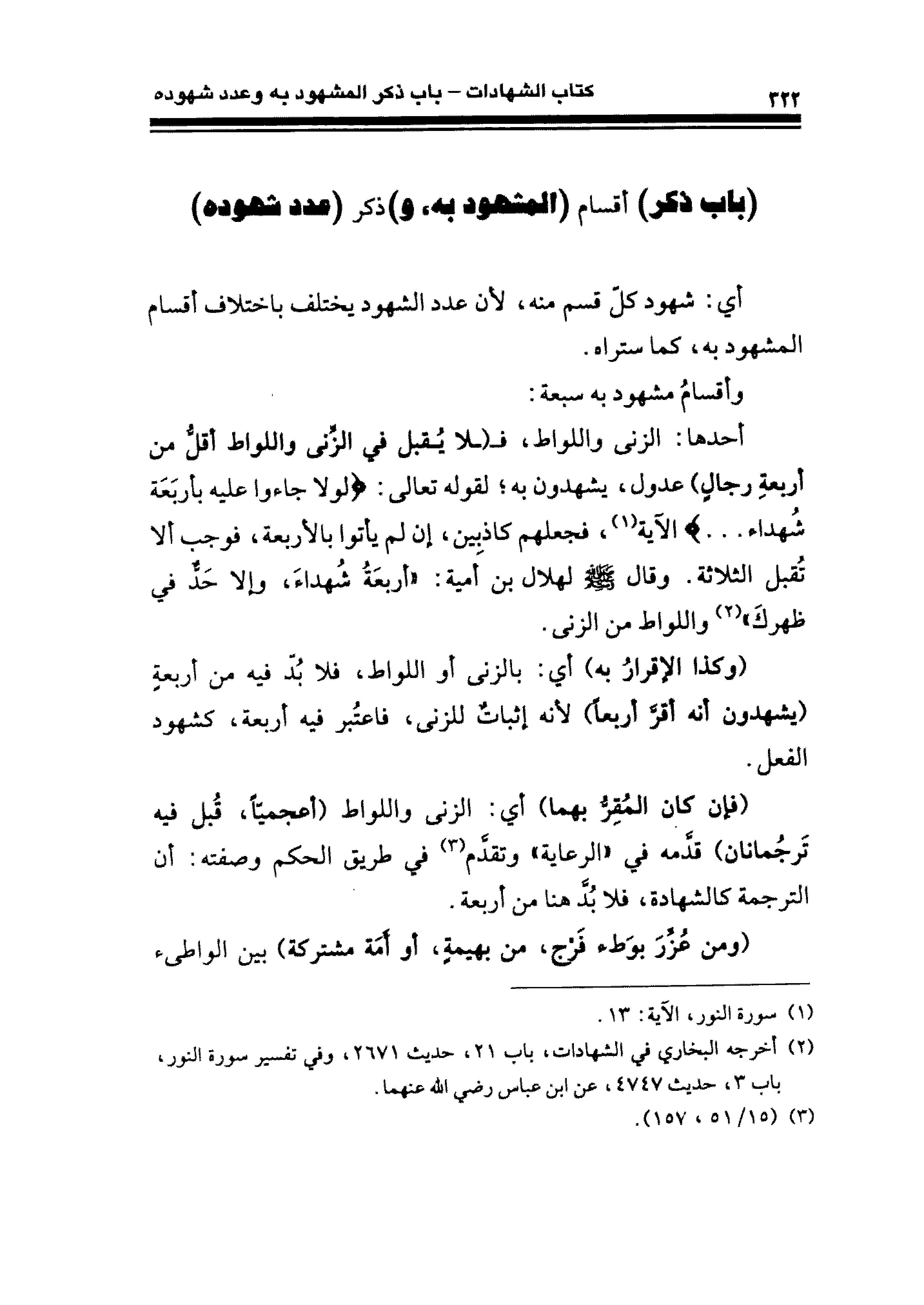 (باب ذكر) أقسام (المشهود به، و) ذكر (عدد شهوده)