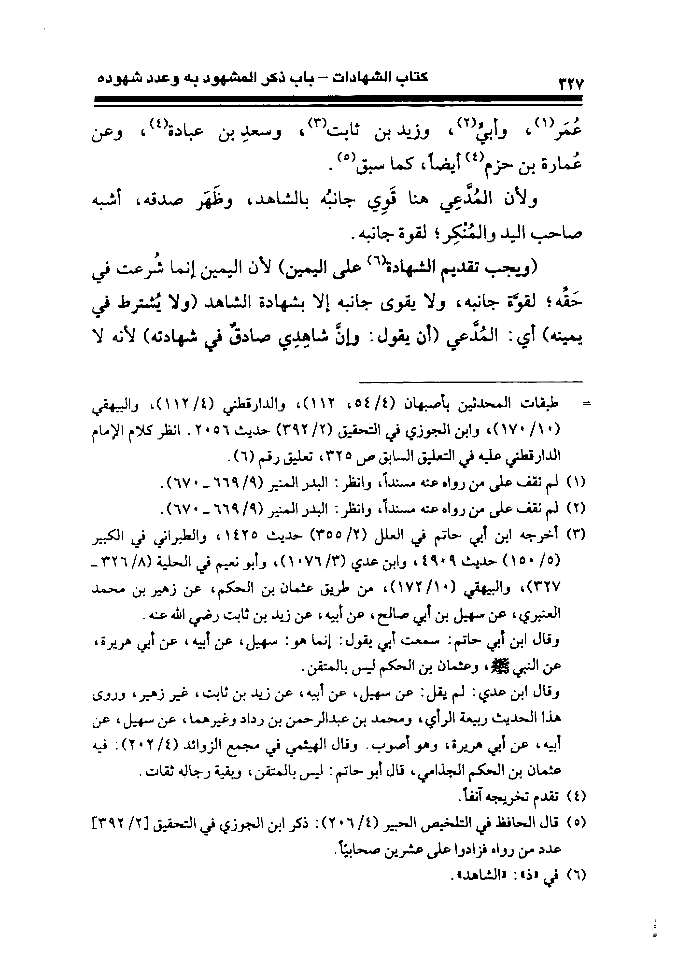 وقال ابن عدي: لم يقل: عن سهيل، عن أبيه، عن زيد بن ثابت، غير زهير، وروى هذا الحديث ربيعة الرأي، ومحمَّد بن عبد الرحمن بن رداد وغيرهما، عن سهيل، عن أبيه، عن أبي هريرة، وهو أصوب. وقال الهيْثمي في مجمع الزوائد (٤/ ٢٠٢): فيه عثمان بن الحكم الجذامي، قال أبو حاتم: ليس بالمتقن، وبقية رجاله ثقات.