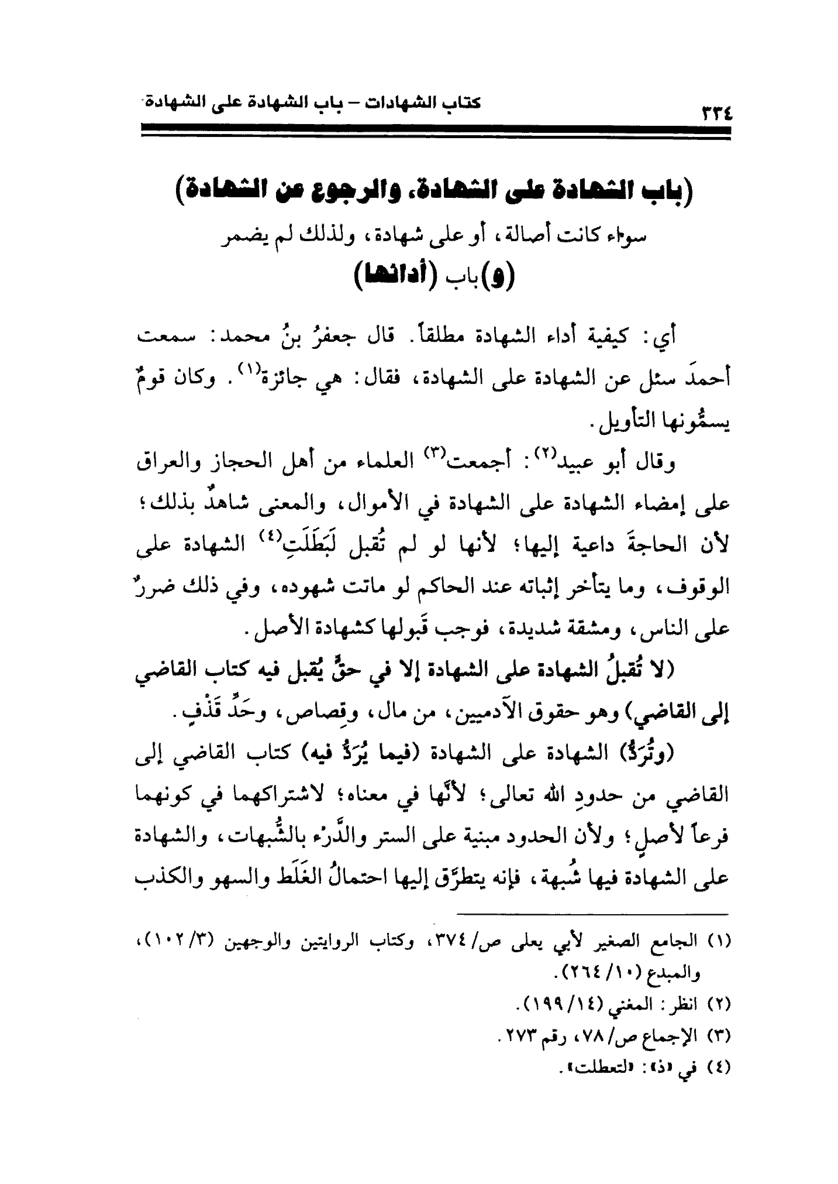 أي: كيفية أداء الشهادة مطلقًا. قال جعفرُ بنُ محمَّد: سمعت أحمدَ سئل عن الشهادة على الشهادة، فقال: هي جائزة (¬١). وكان قومٌ يسمُّونها التأويل.